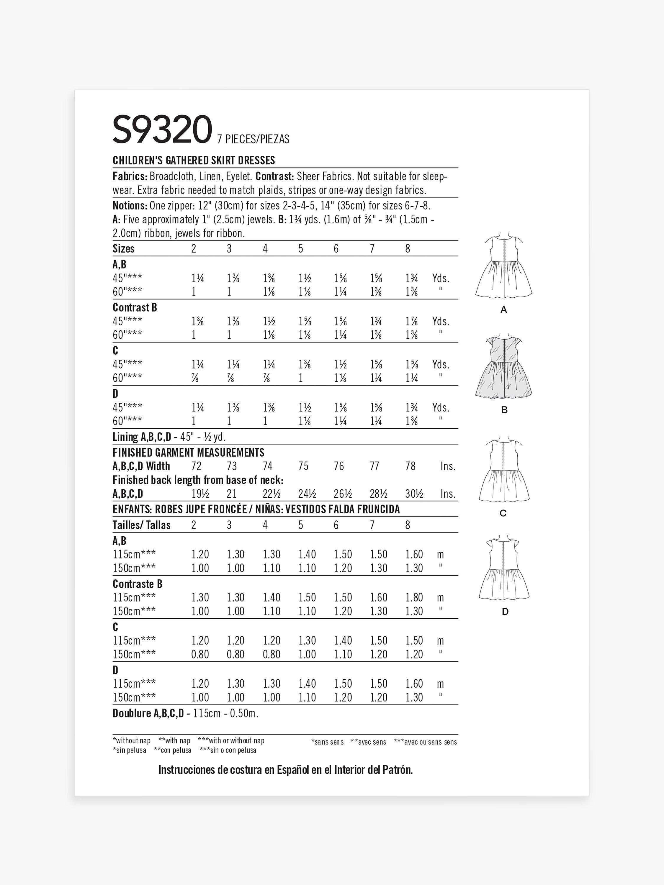 SimplicityChild's Gathered Skirt Dress Sewing Pattern, SS9320