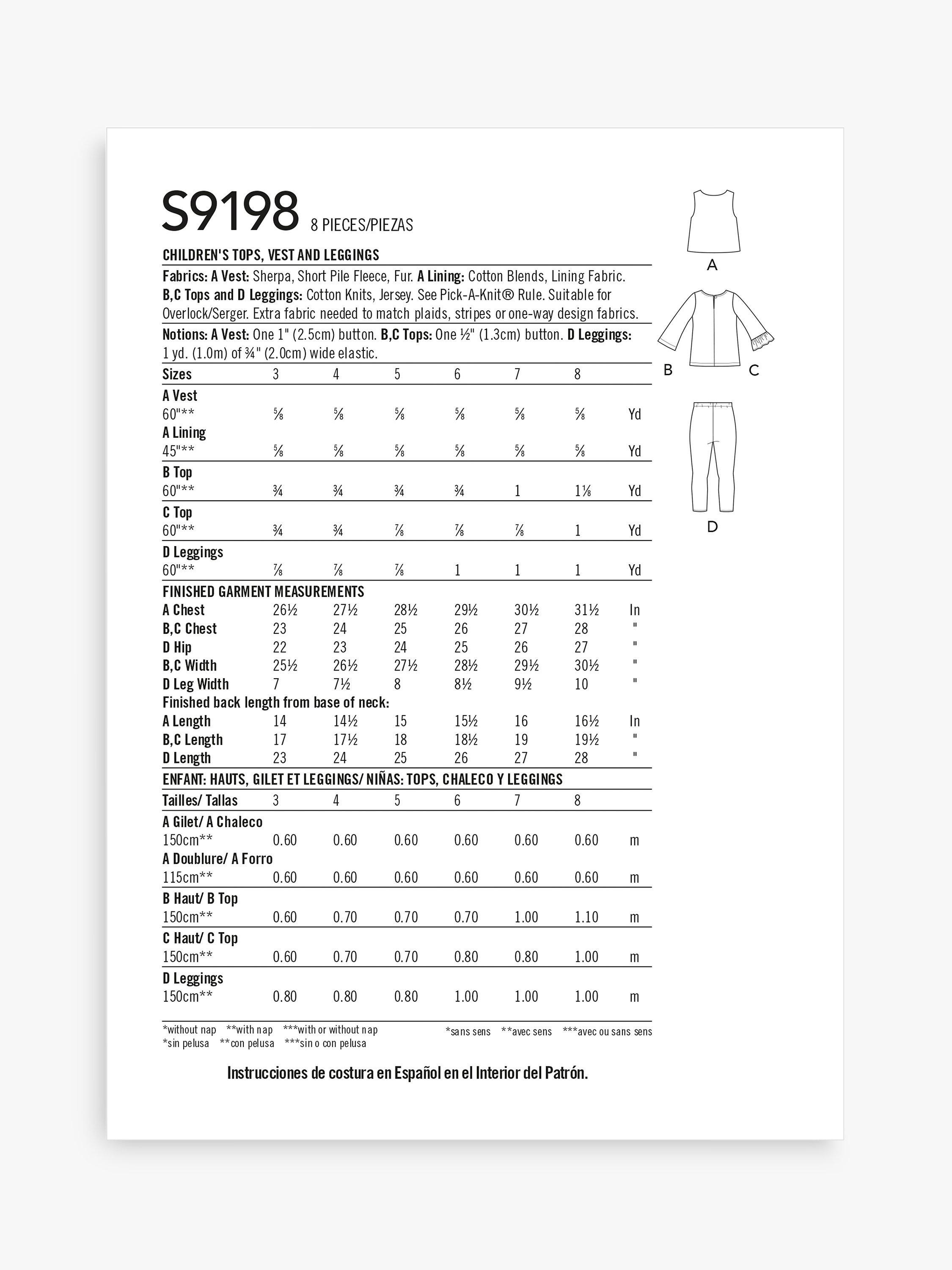 SimplicityChild's Pullover Top and Leggings Sewing Pattern, S9198, A
