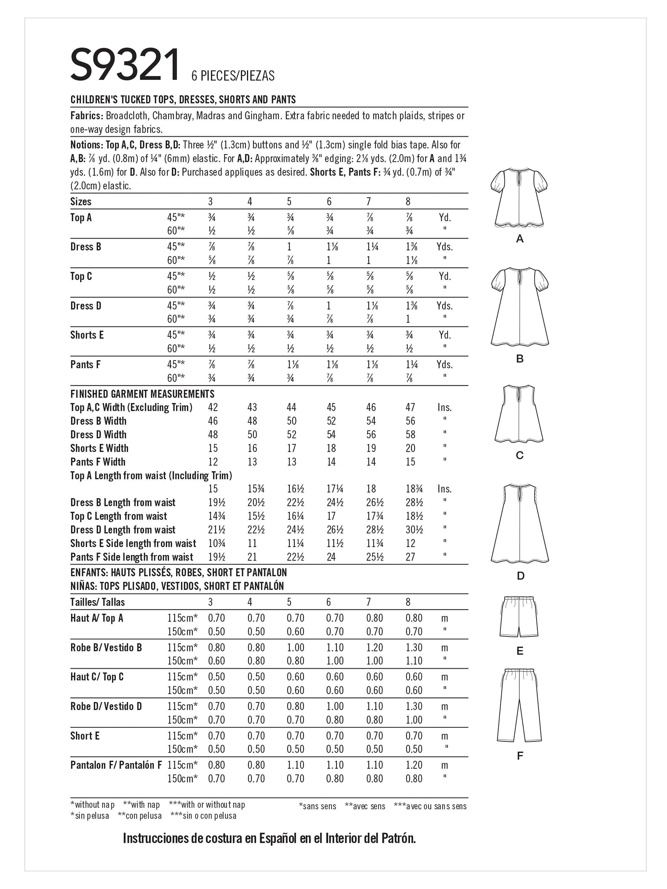SimplicityChild's Tops and Bottoms Sewing Pattern, S9321, A