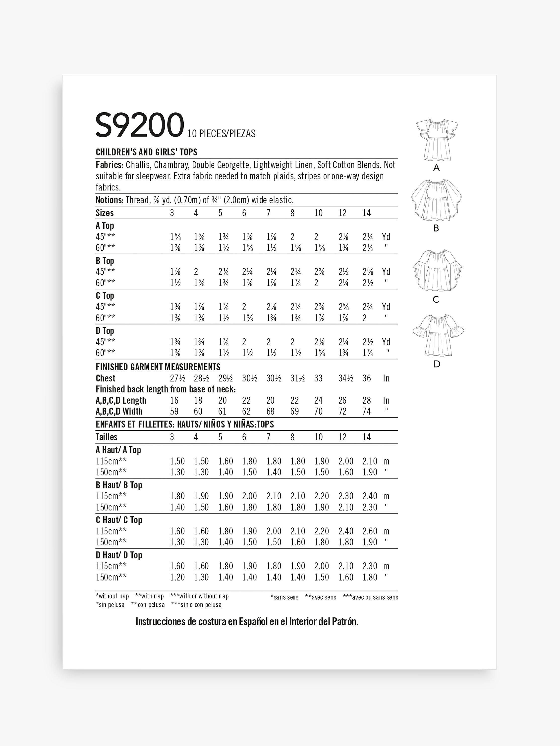SimplicityChild's Vest Tops Sewing Pattern, S9200