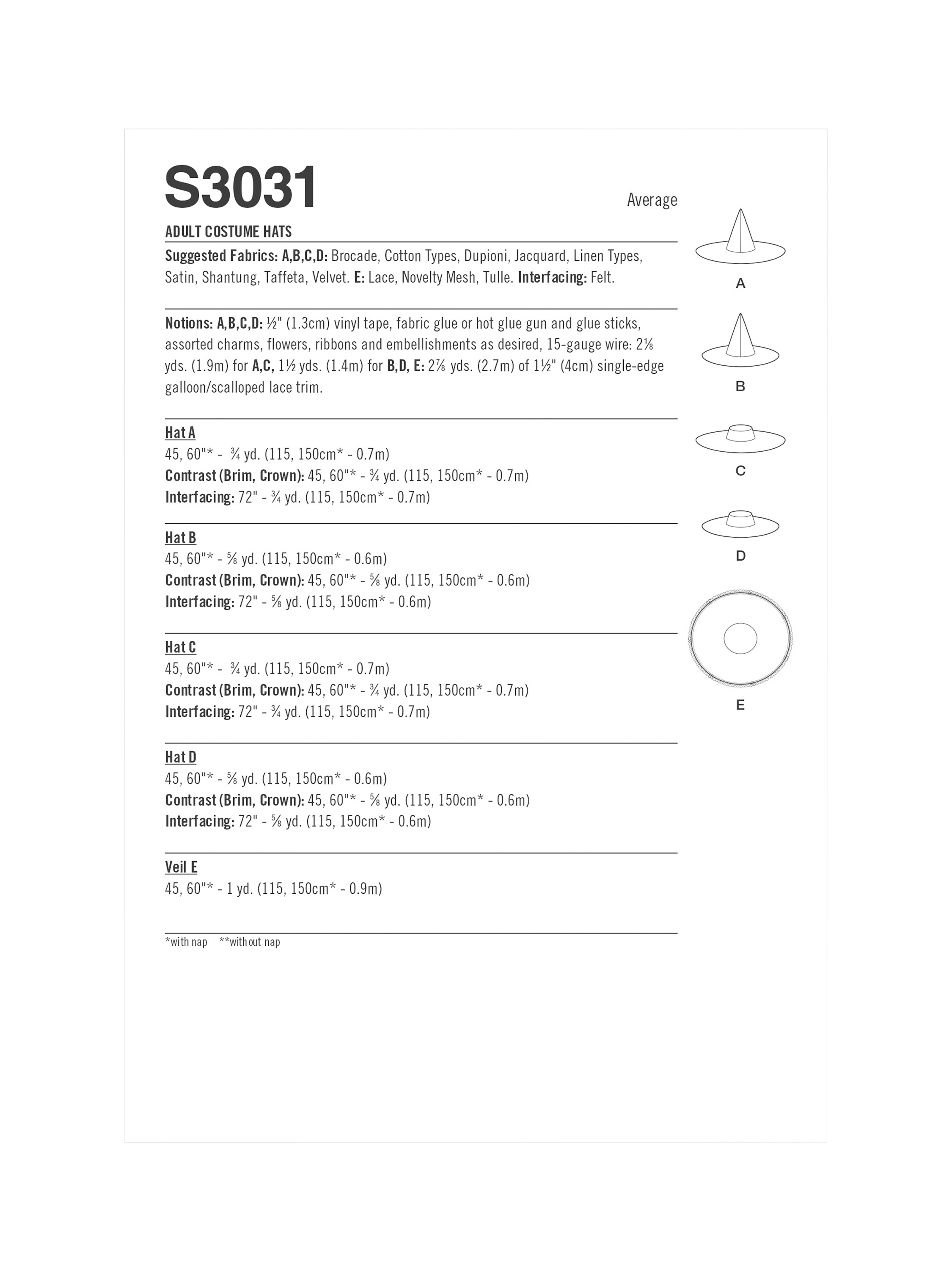 SimplicityCostume Hat Sewing Pattern SS3031OS