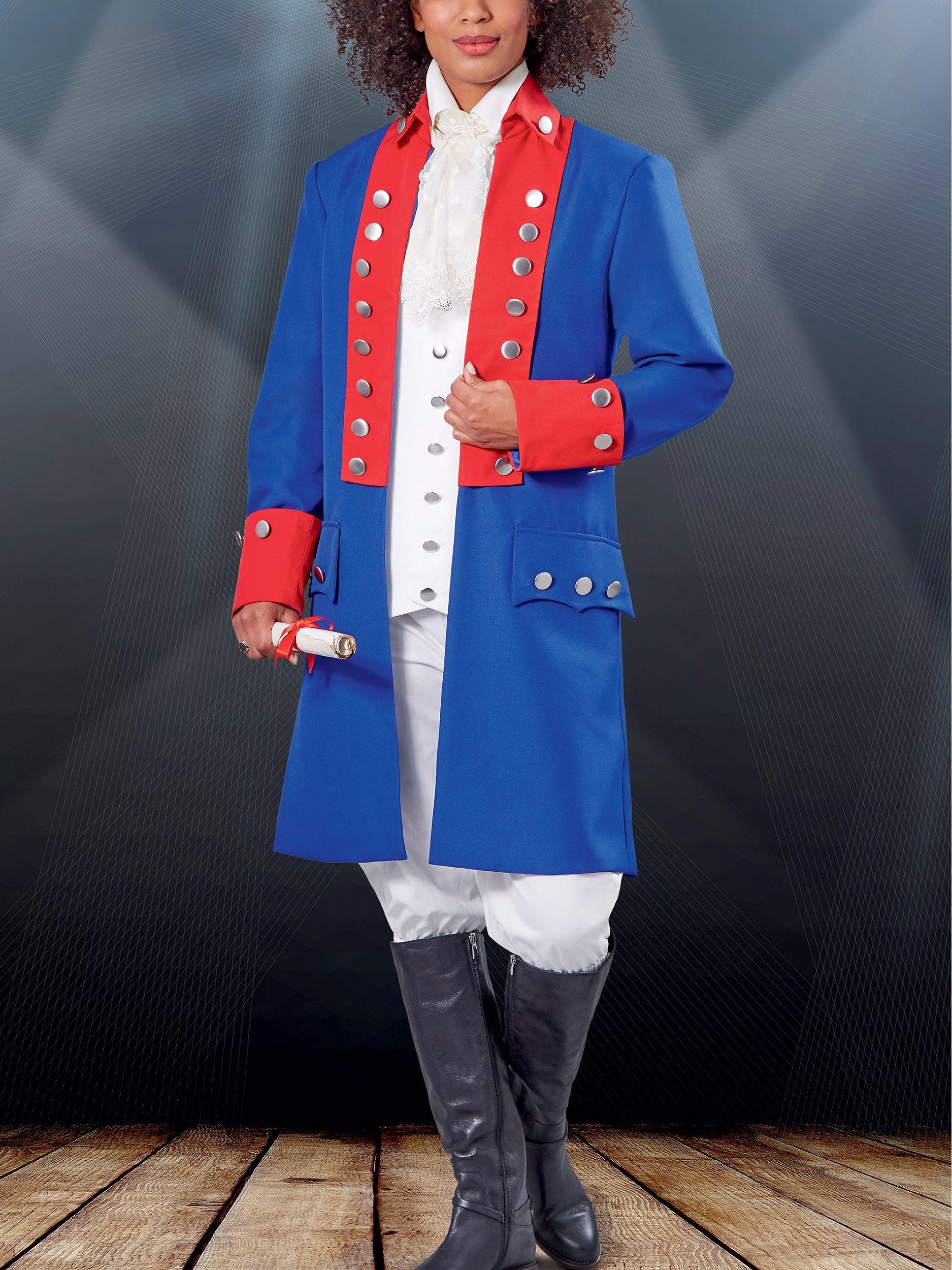 Continental Army uniform, sized to fit men and women. Lined coat and vest have buttons and streamlined detailing, paired perfectly with easy pull-on knickerbockers.