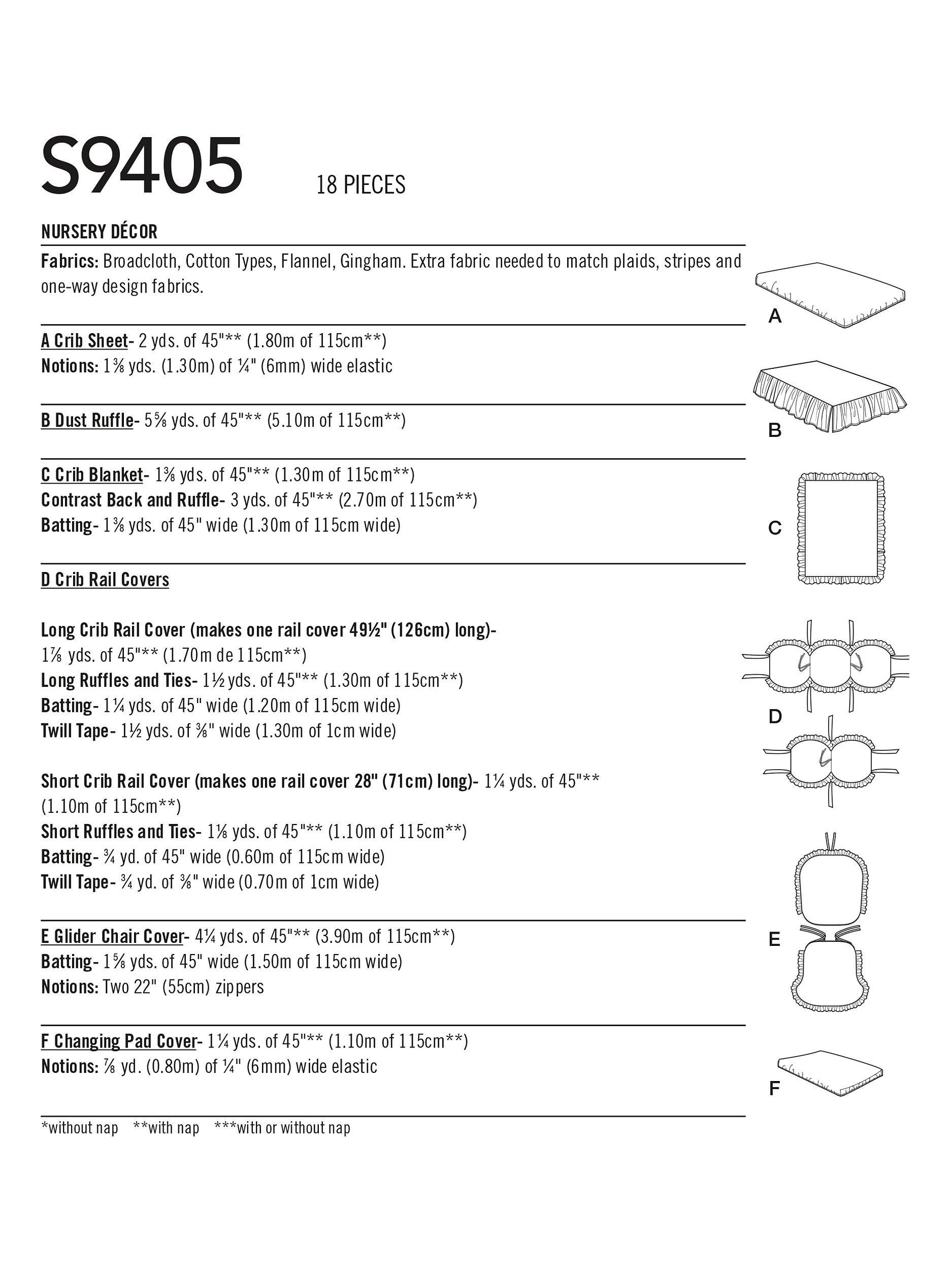 SimplicityCrib Set Sewing Pattern, S9405, OS