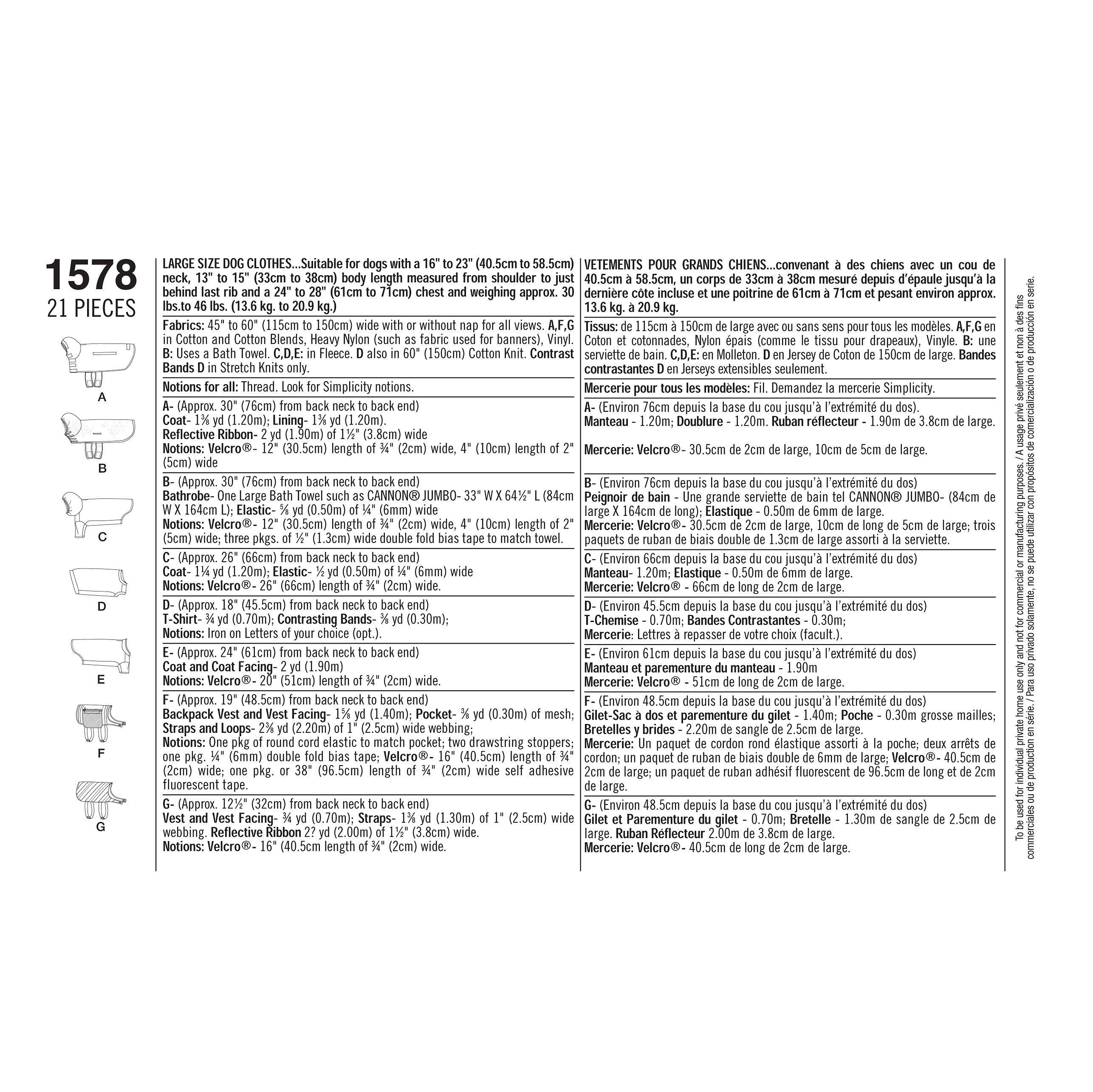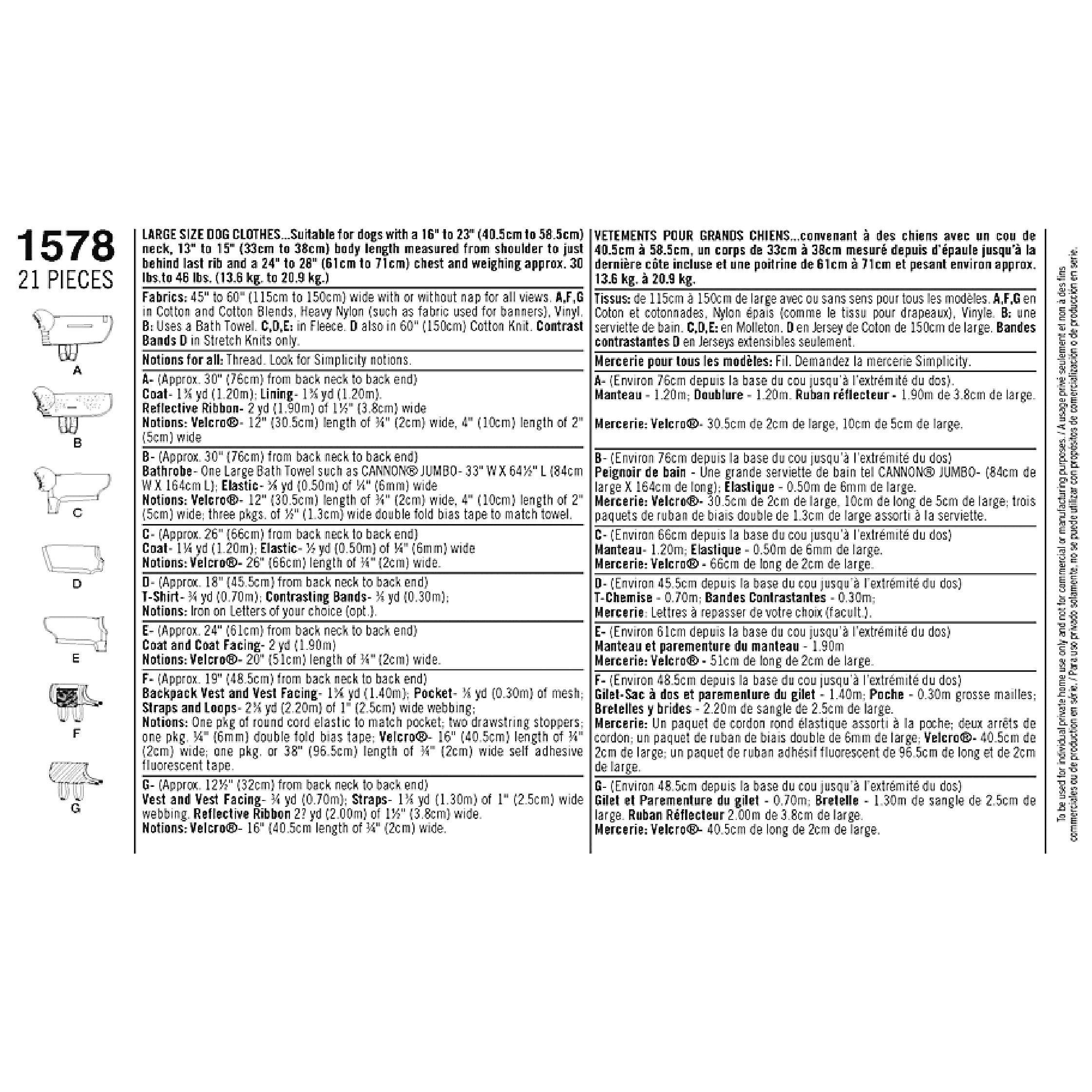 SimplicityDog Clothing Sewing Pattern, 1578