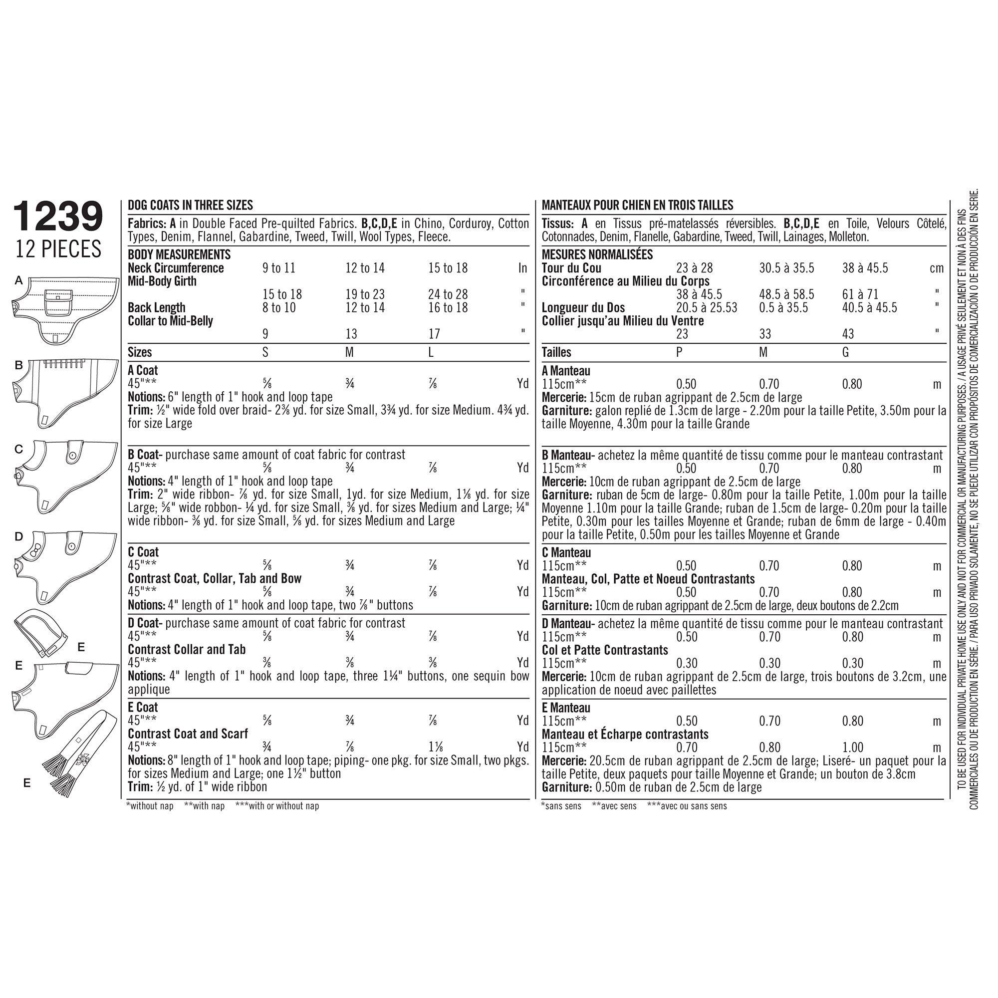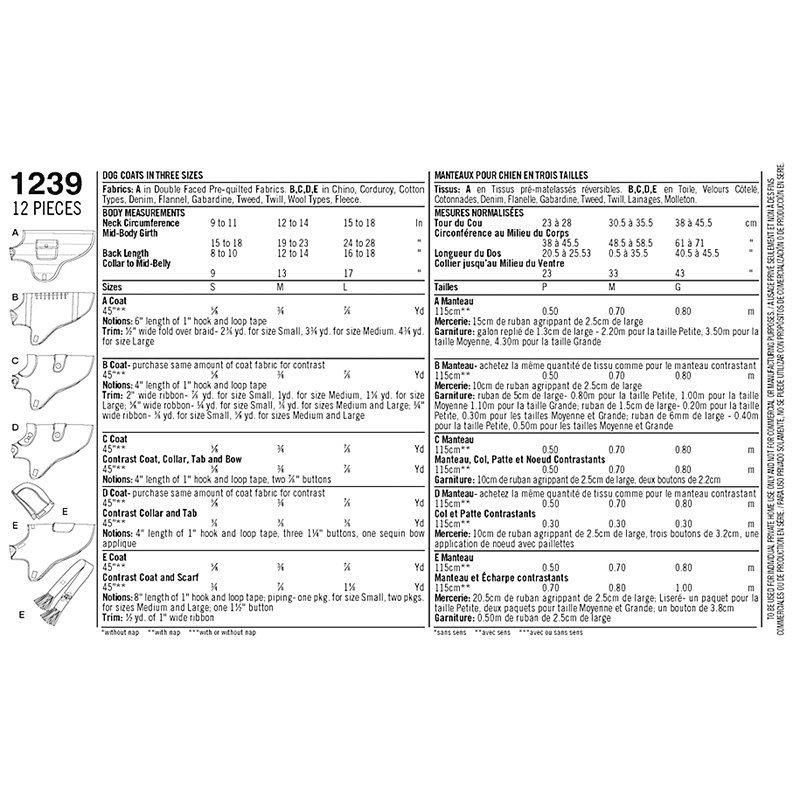 SimplicityDog Coat Sewing Pattern, 1239