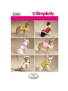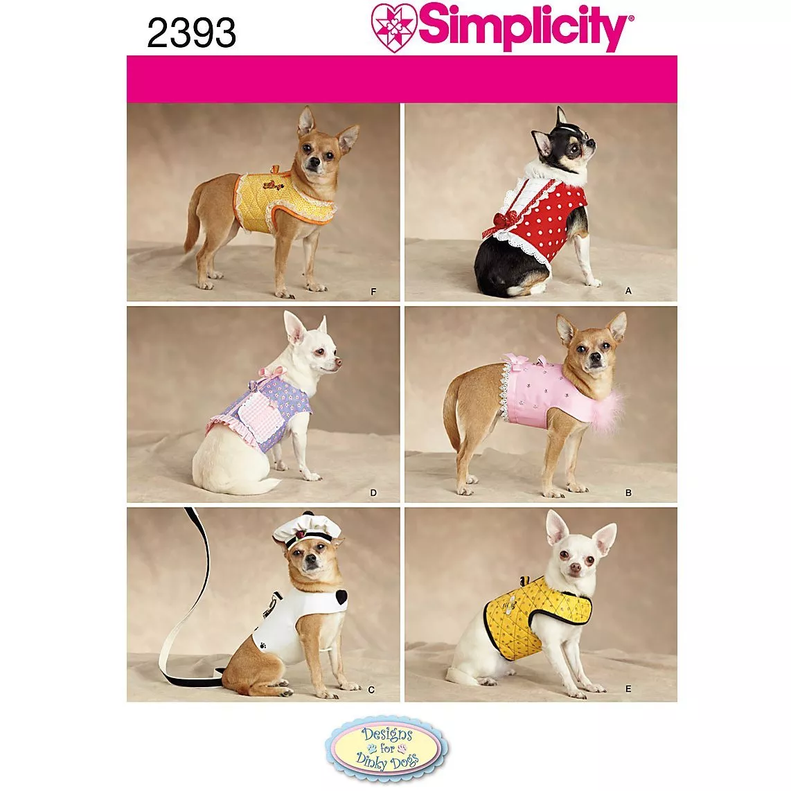 Sewing pattern for fancy coats for small dogs by Designs for Dinky Dogs. Sizes: XXS (chest 8-10"), XS (chest 10-12"), S (chest 12-14"), M (chest 14-16").