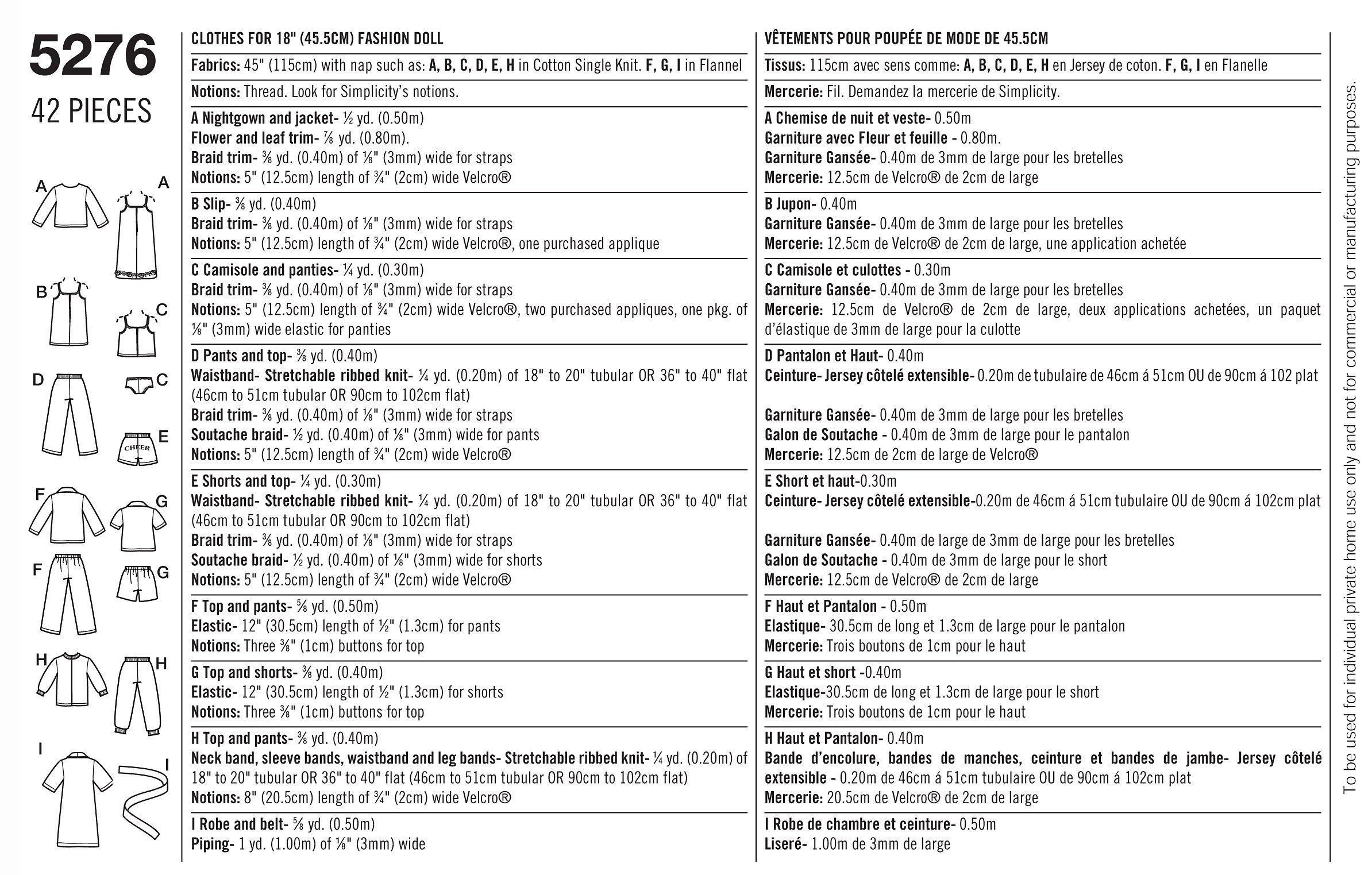 SimplicityDoll Clothing Sewing Pattern, 5276