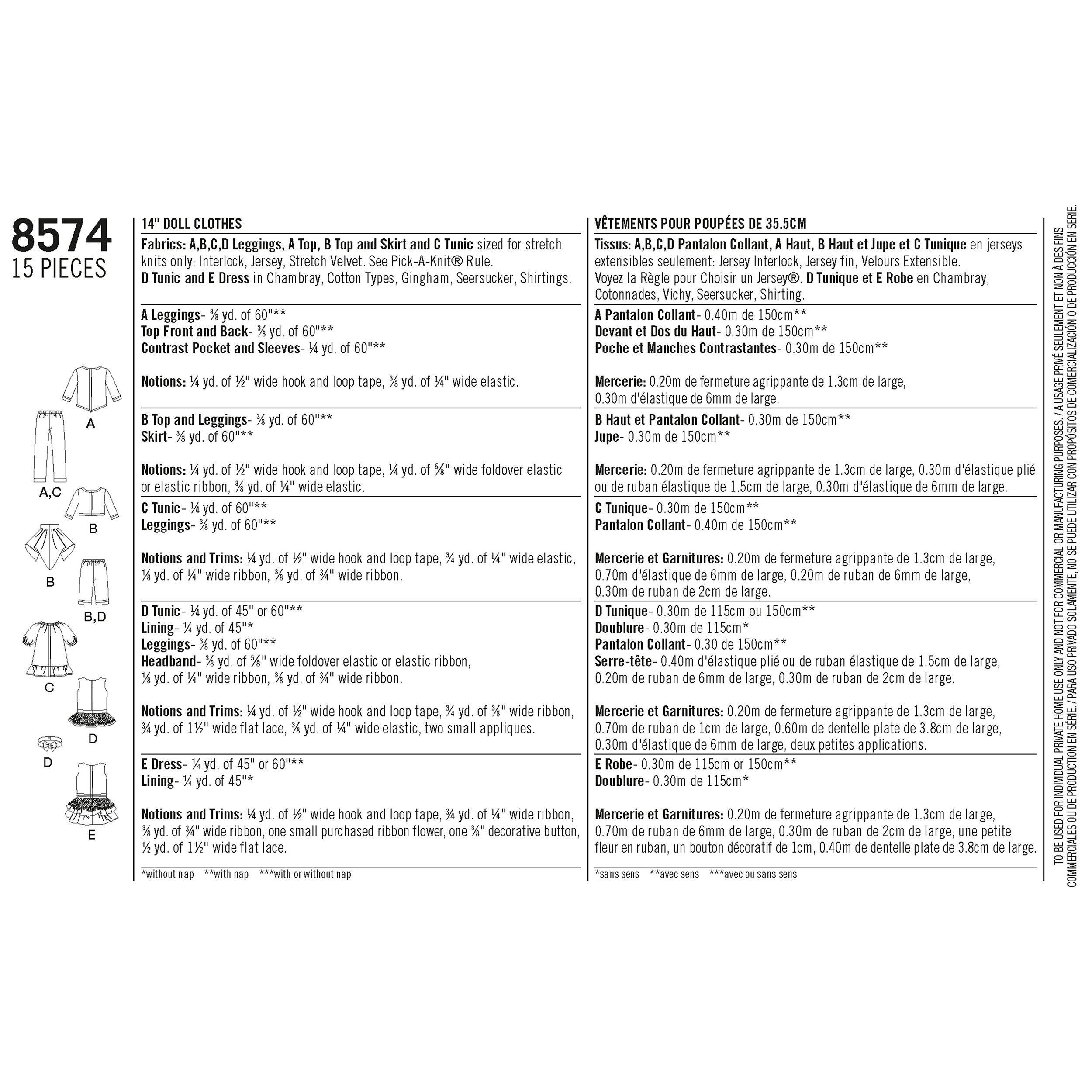 SimplicityDoll Clothing Sewing Pattern, 8574