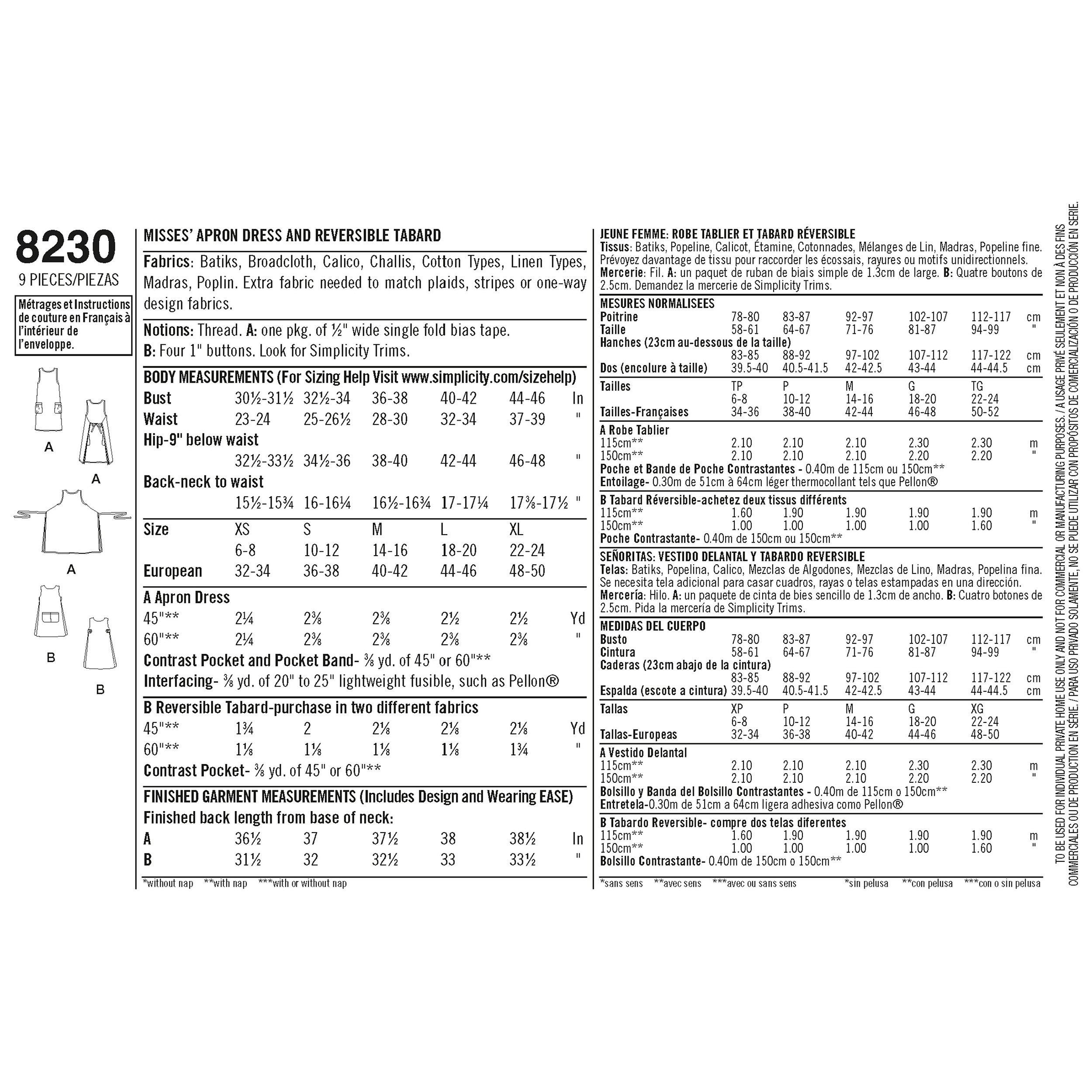 Following this pattern you can make stylish aprons to wear while crafting, cooking, baking and gardening. The apron dress has side pockets that can be tied either in the front or back and a reversible tabard plus a kangaroo pocket. Please note, this pattern is suitable for sizes XS-XL.
