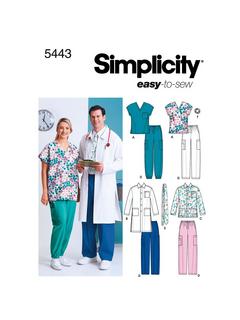 Make a plus size women's and men's scrub top, jackets, trousers, tie and hairband with this Easy-to-Sew pattern from Simplicity.