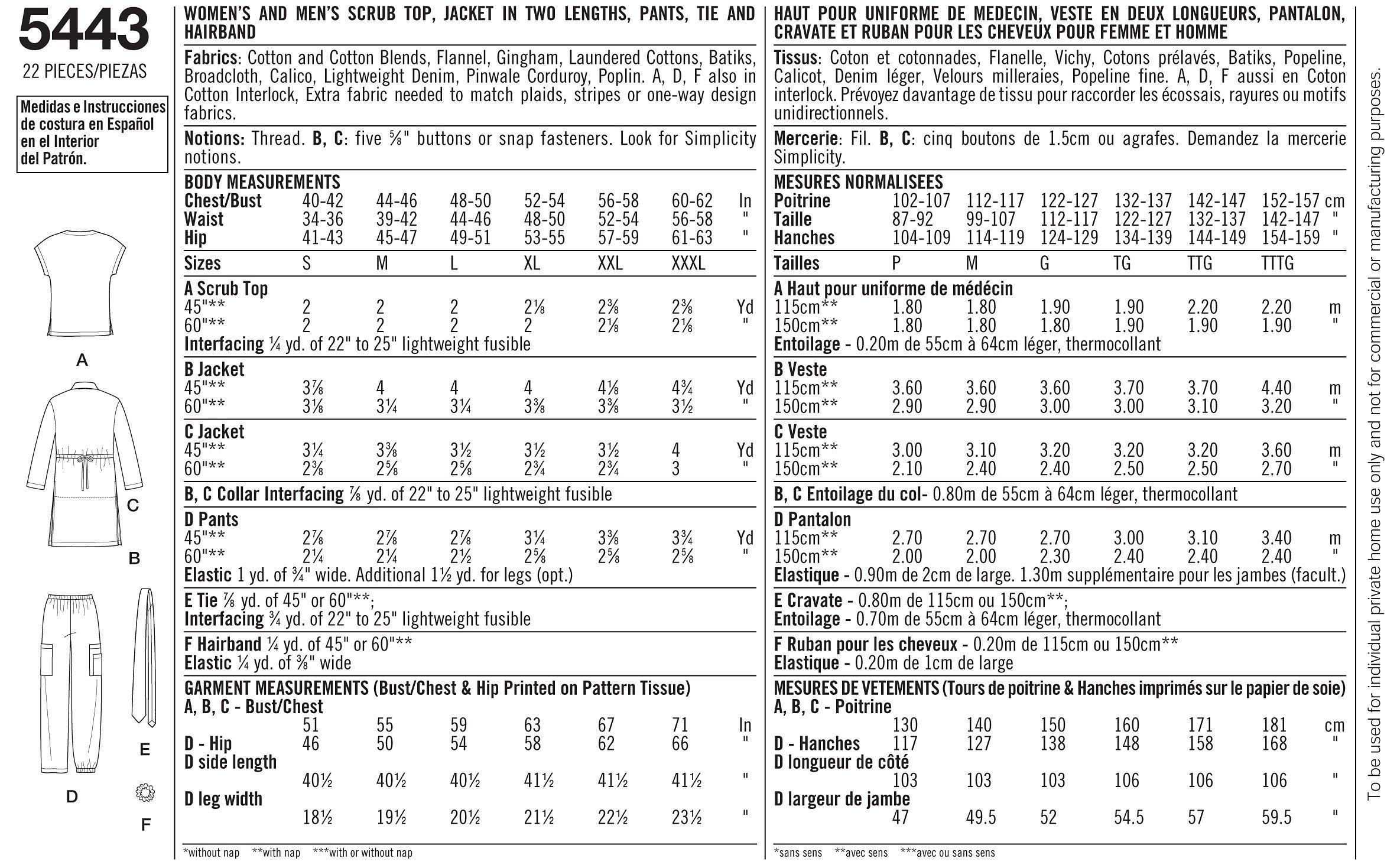 SimplicityEasy to Sew Plus Size Scrubs Sewing Leaflet, 5443