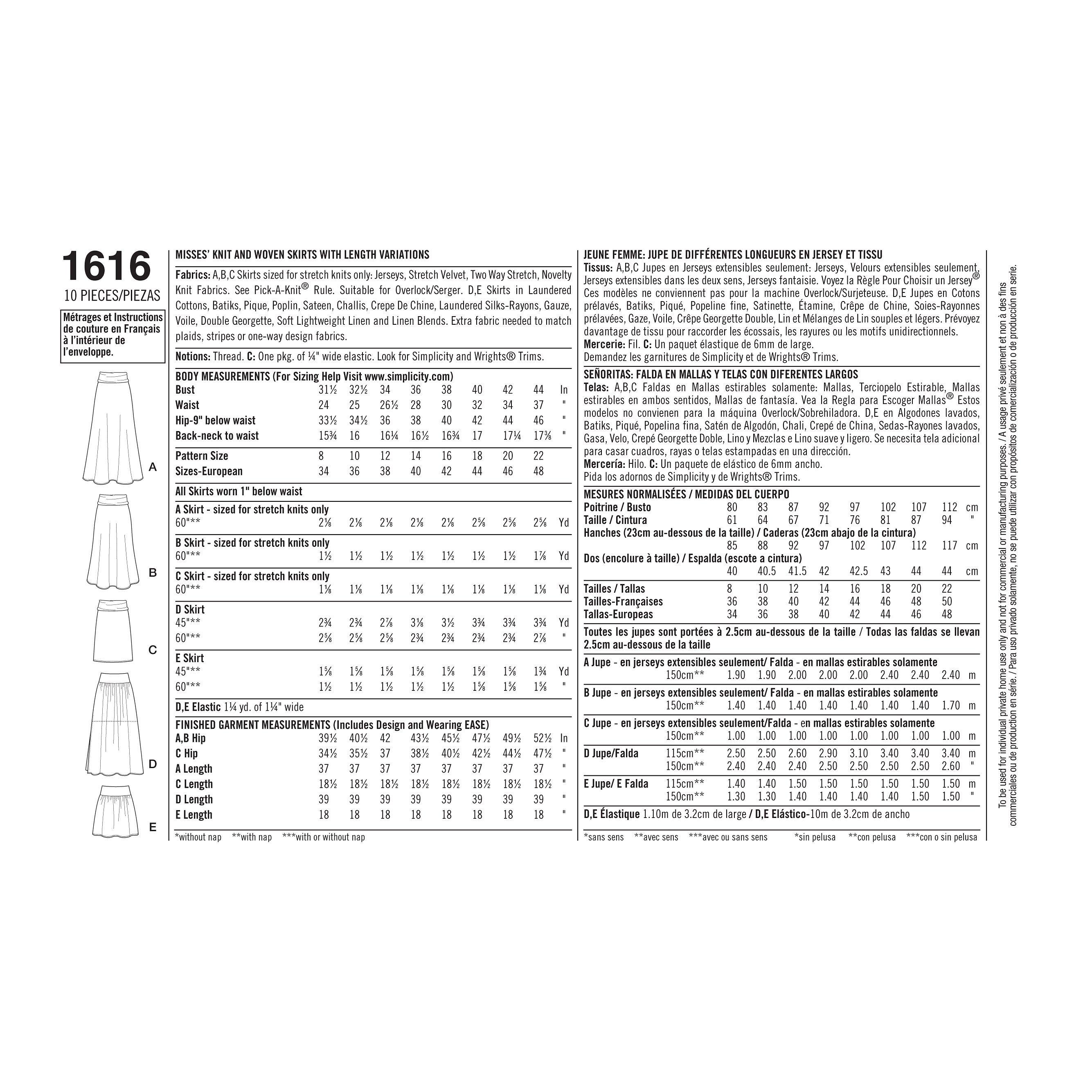 SimplicityEasy to Sew Womens' Skirts Sewing Pattern, 1616