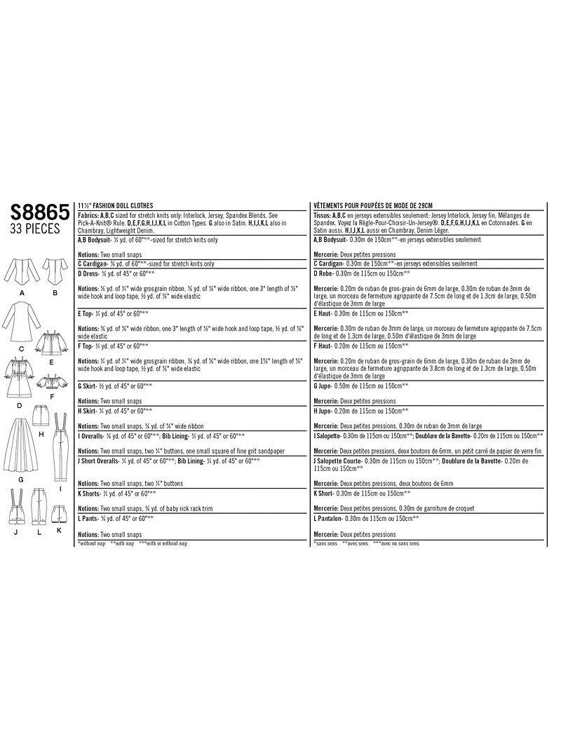 SimplicityFashion Doll Clothes Sewing Pattern, 8865