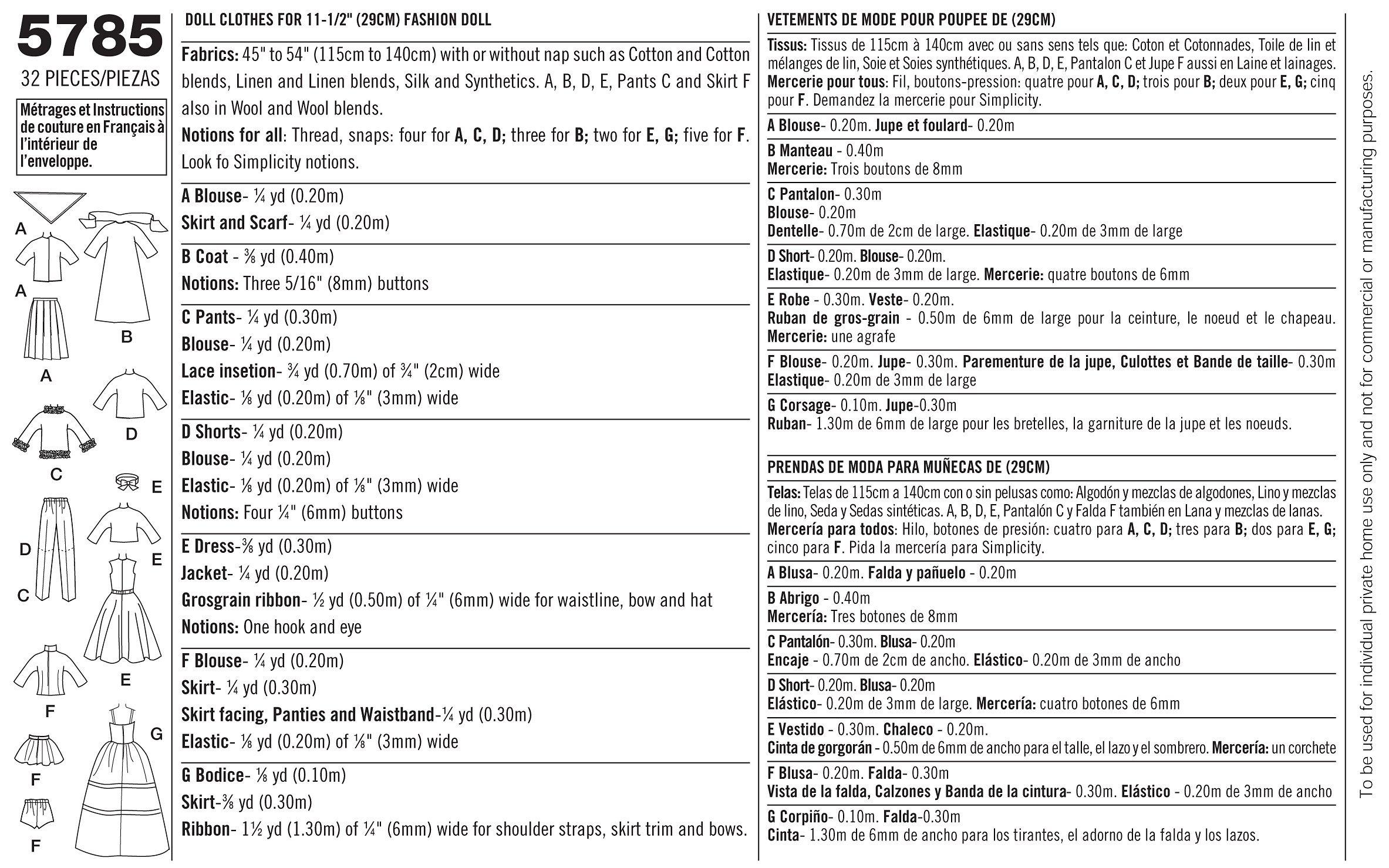 SimplicityFashion Doll Clothing Sewing Pattern, 5785