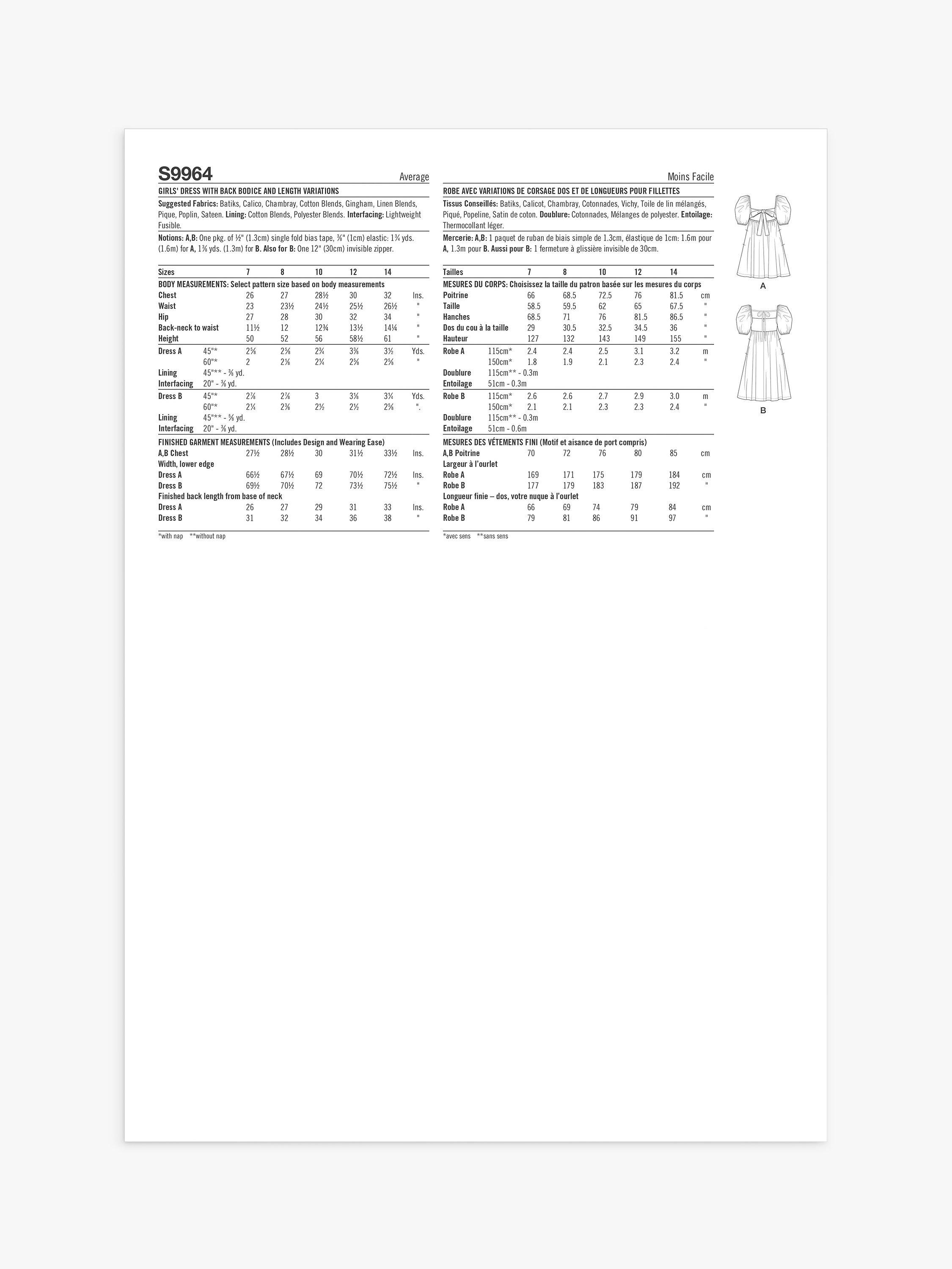 SimplicityGirls' Puff Sleeve Dress Sewing Pattern, S9964