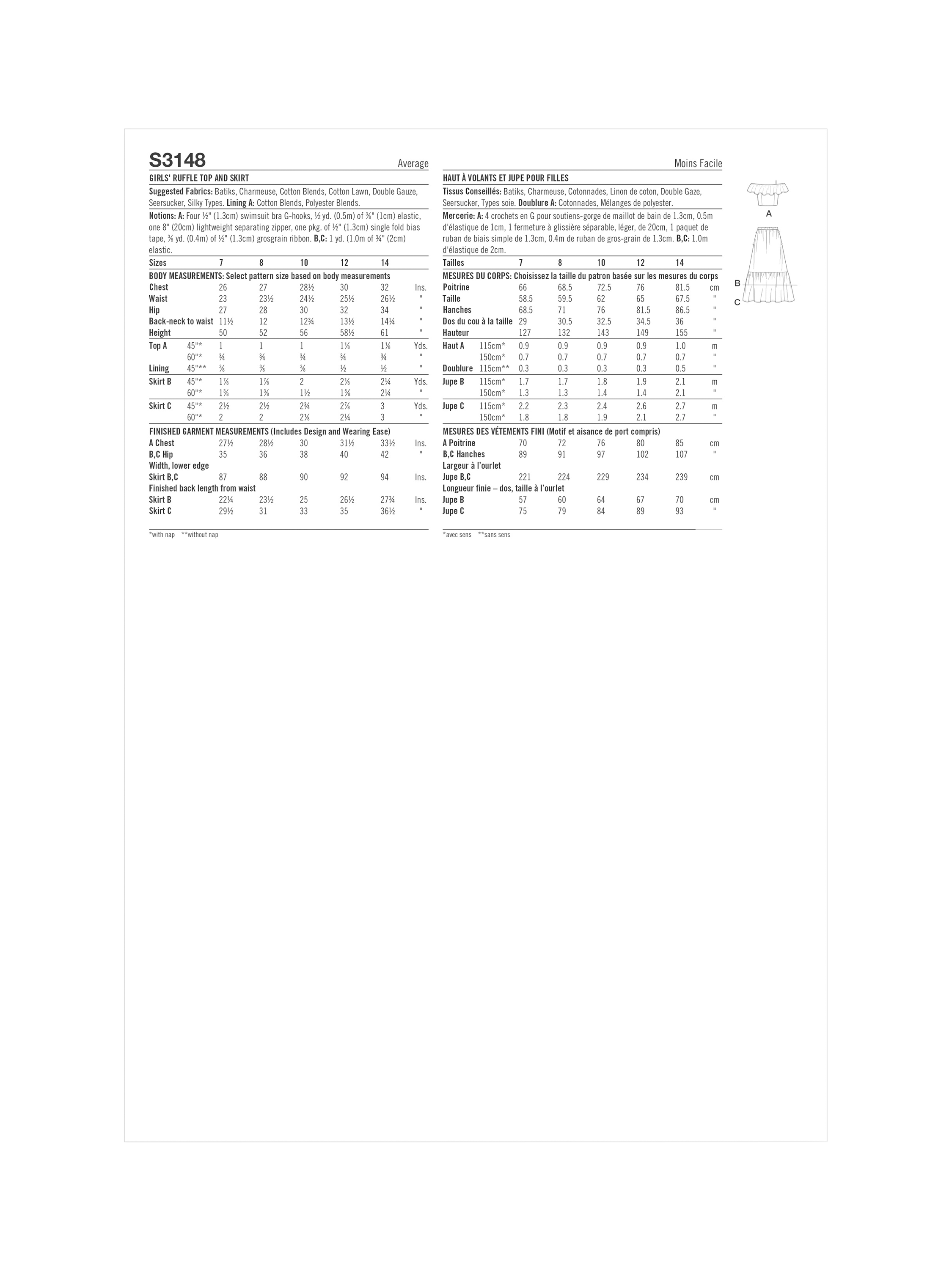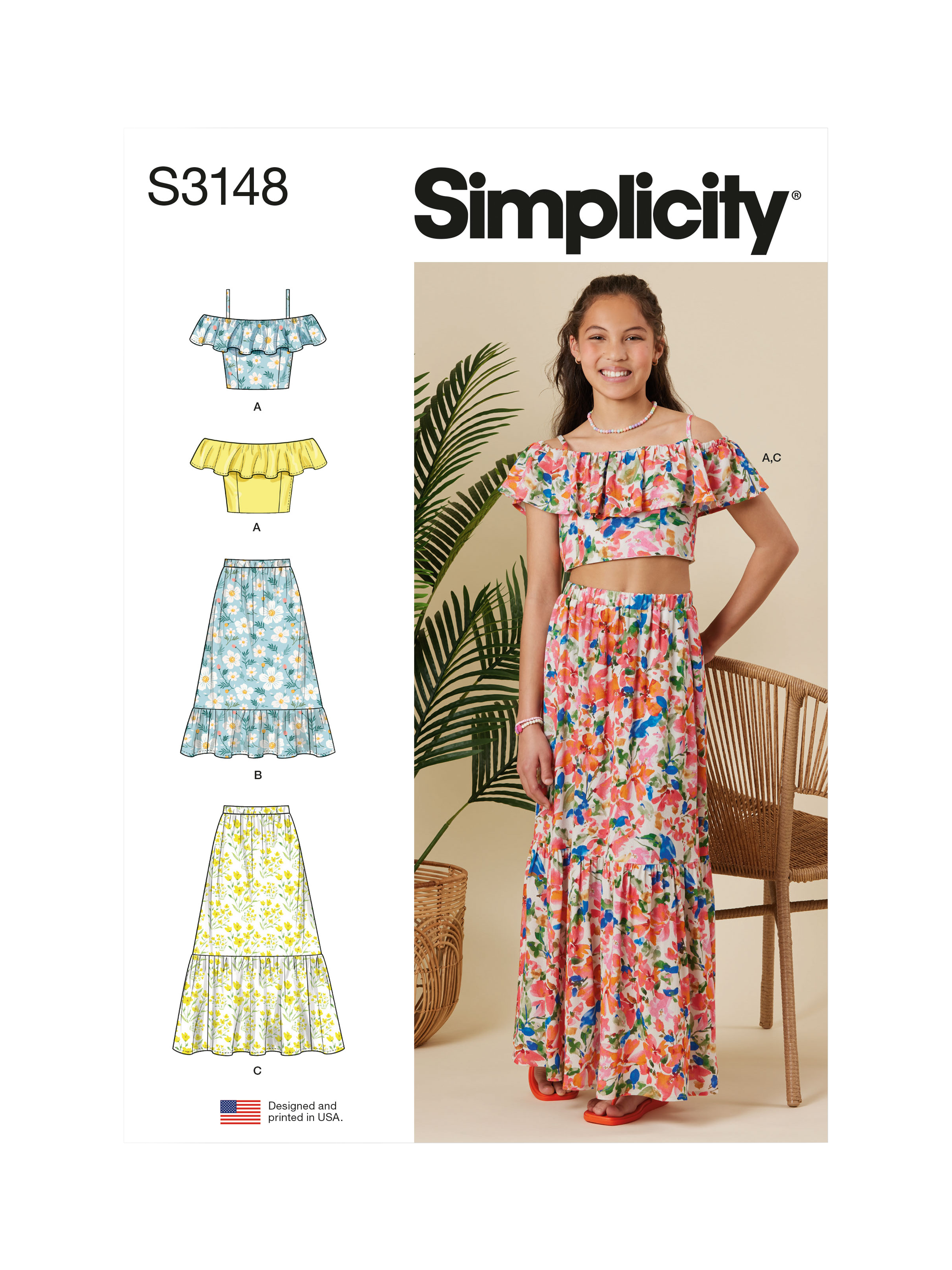 SimplicityGirls' Ruffle Top and Skirt Sewing Pattern, S3148
