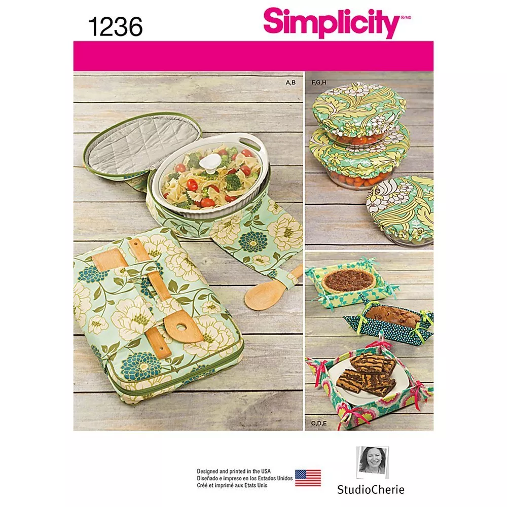 This Simplicity sewing pattern allows you to create a range of handy and stylish kitchen accessories including casserole carriers, gifting baskets and bowl covers to transport your delicious creations.