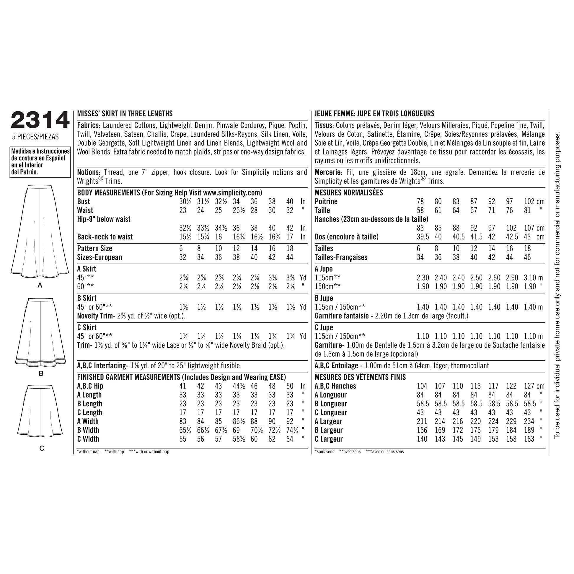 SimplicityLearn to Sew Skirts Sewing Pattern, 2314