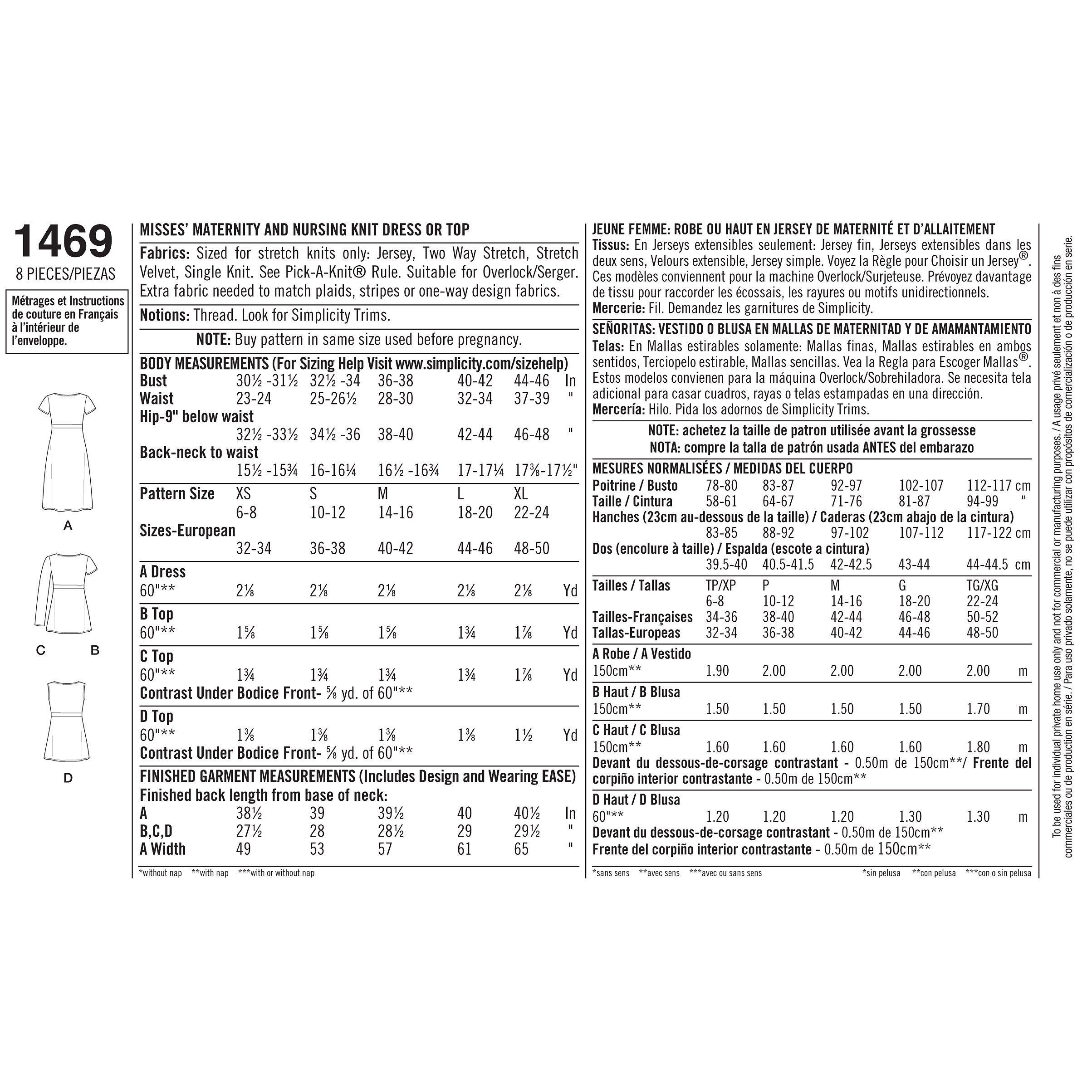 SimplicityMaternity Top & Dress Sewing Pattern, 1469