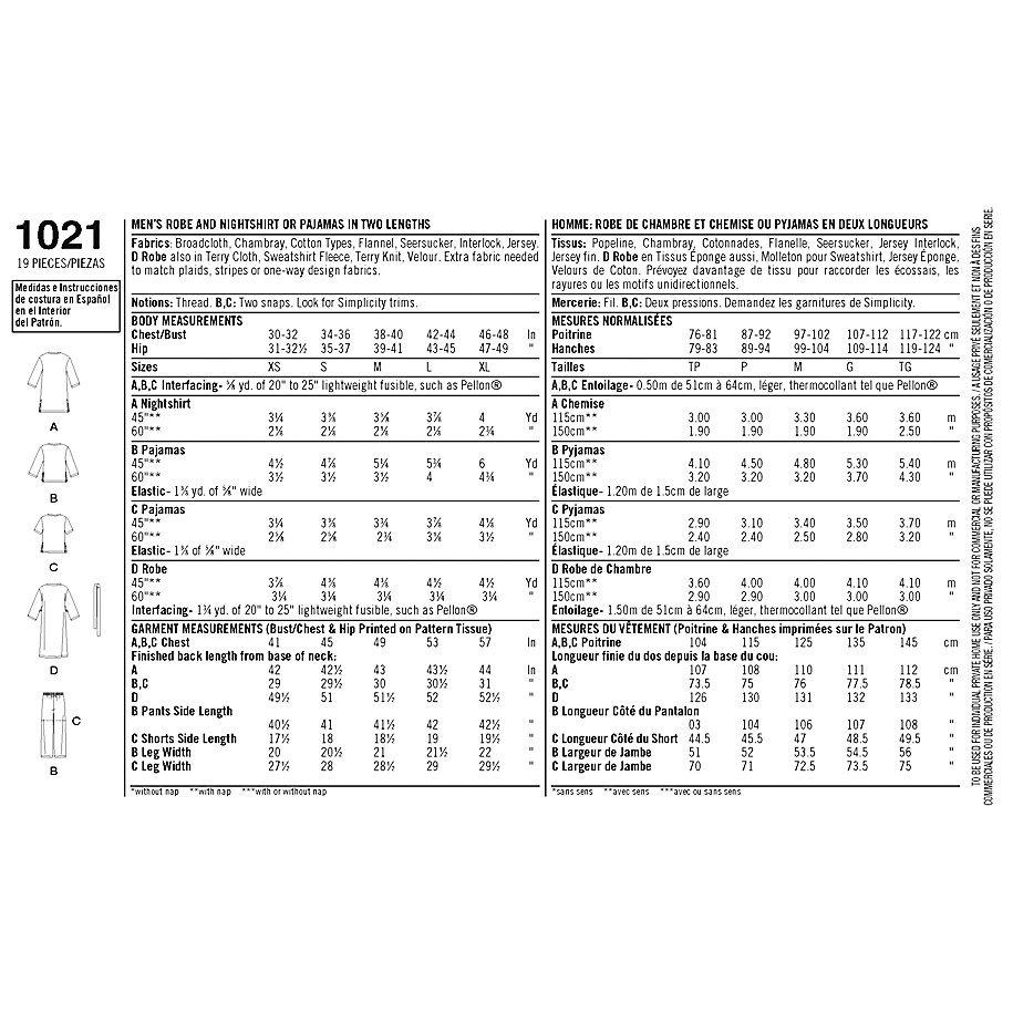 SimplicityMen's Classic Pyjamas and Robe Sewing Pattern, 1021