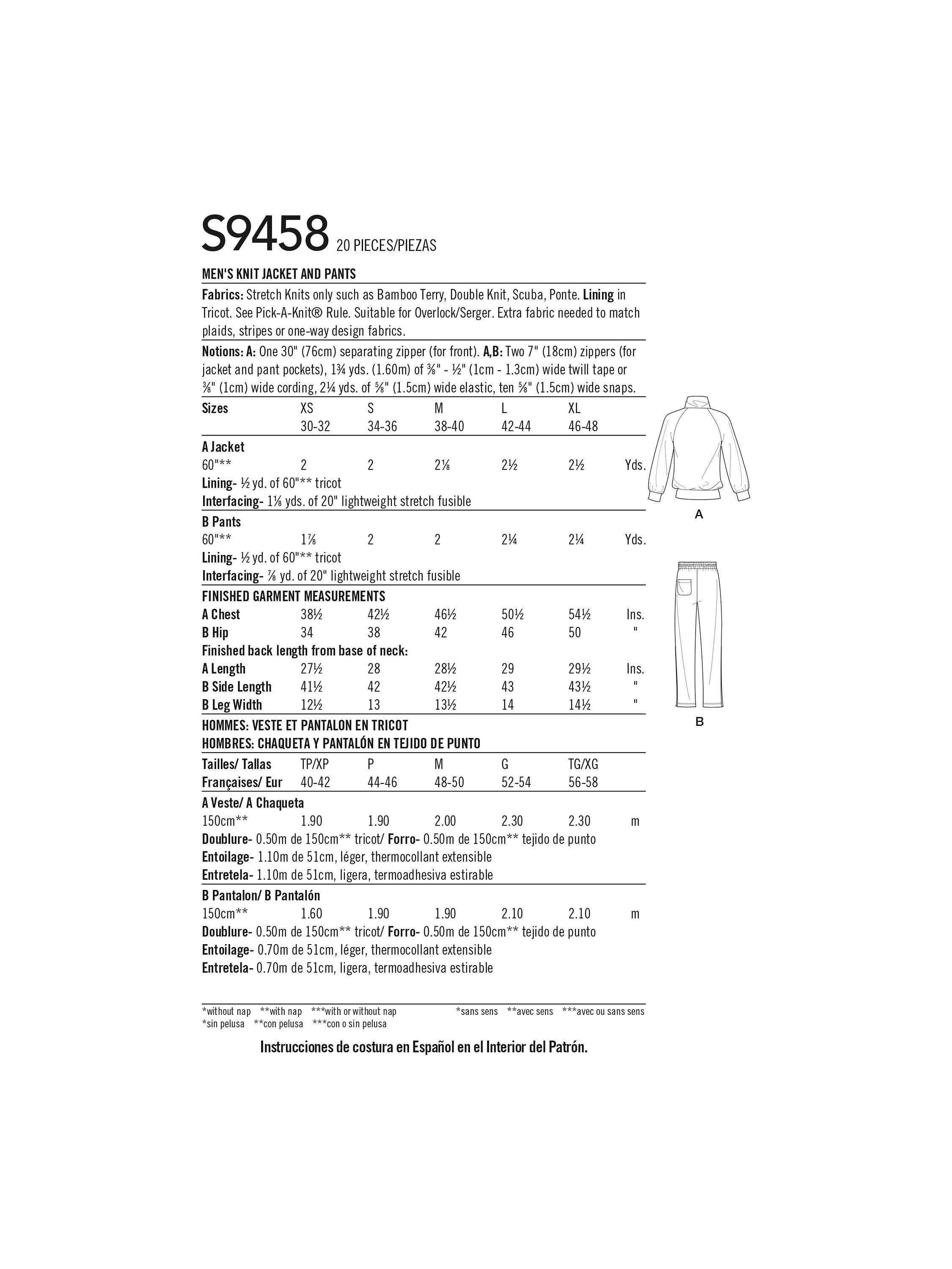 SimplicityMen's Knit Jacket and Pants Sewing Pattern, S9458, A