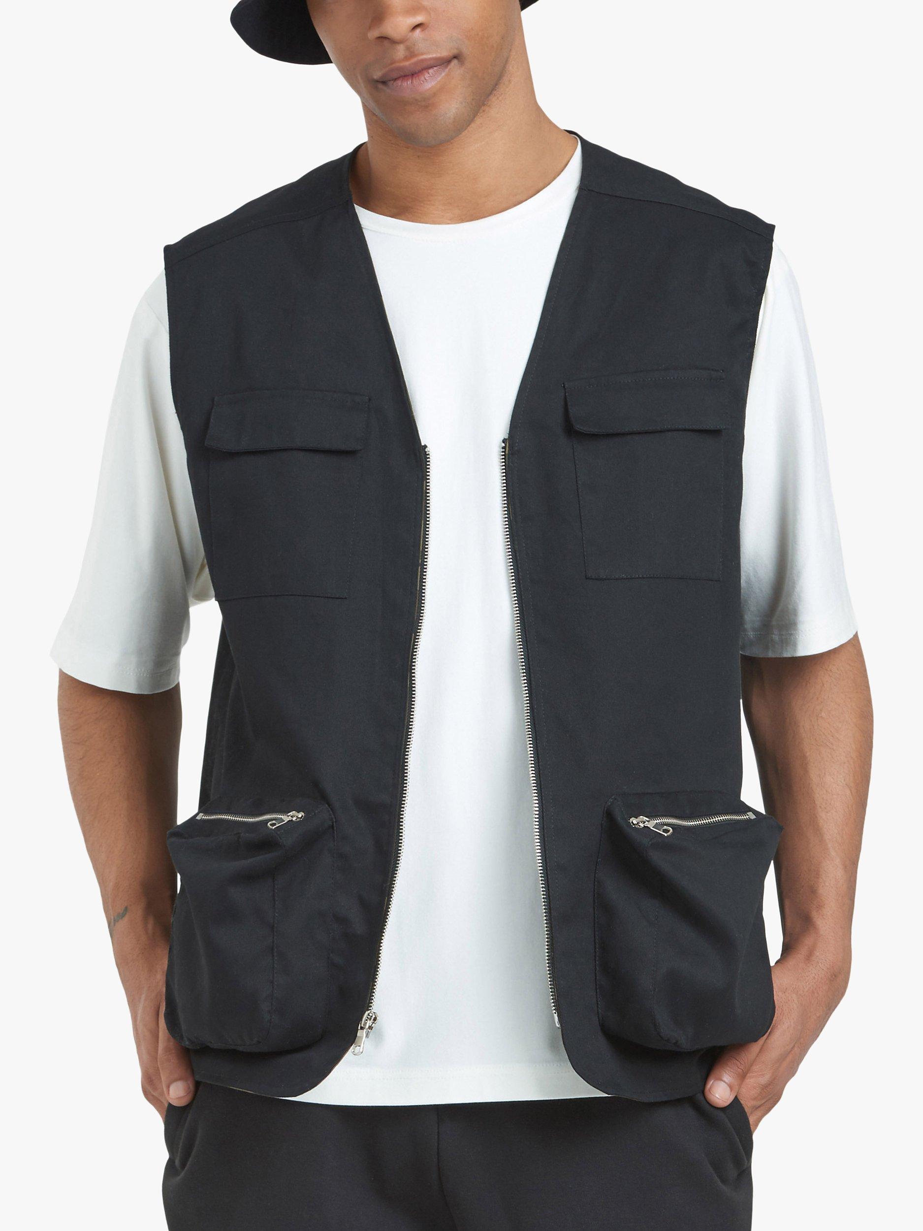 Relaxed utility waistcoat has zipped front, pocket details, back yoke and is lined to edge.