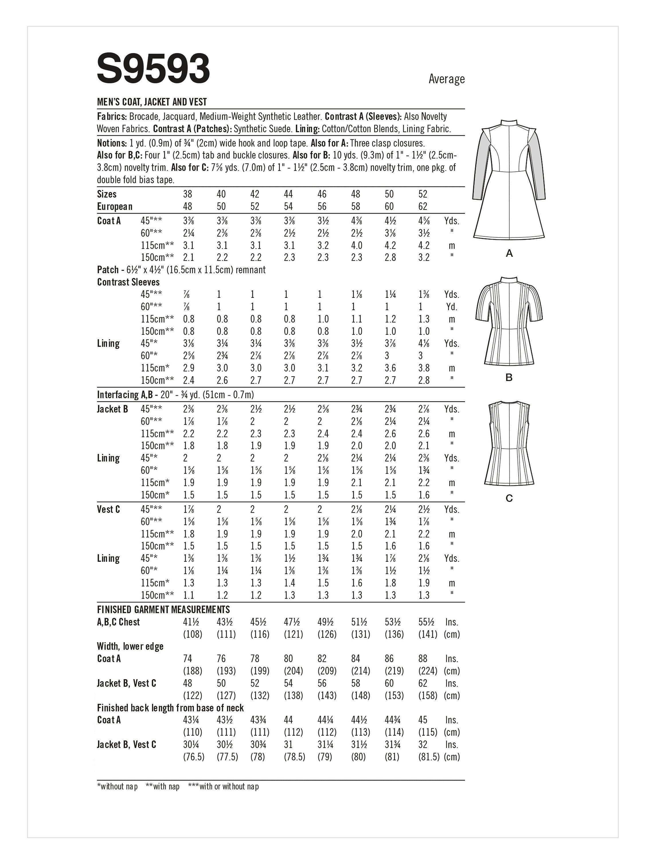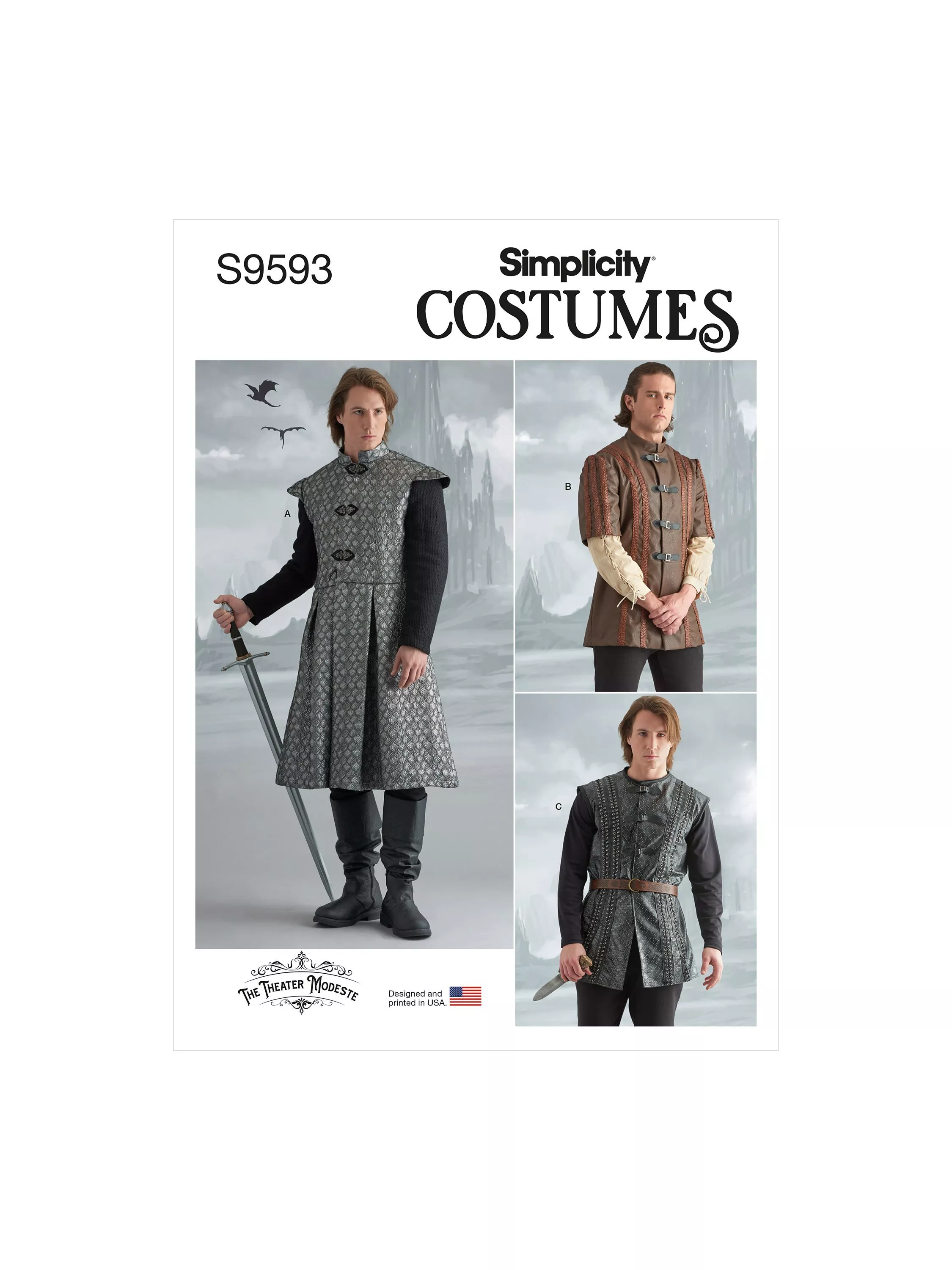 SimplicityMen's Medieval Fantasy Coat, Jacket and Vest Sewing Pattern, S9593