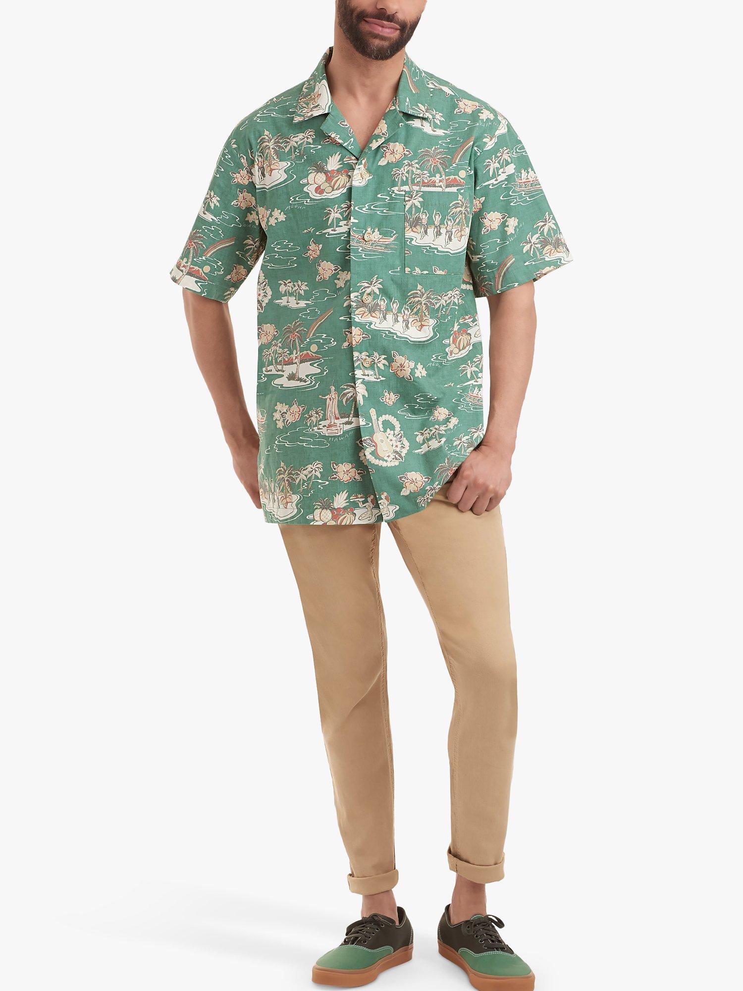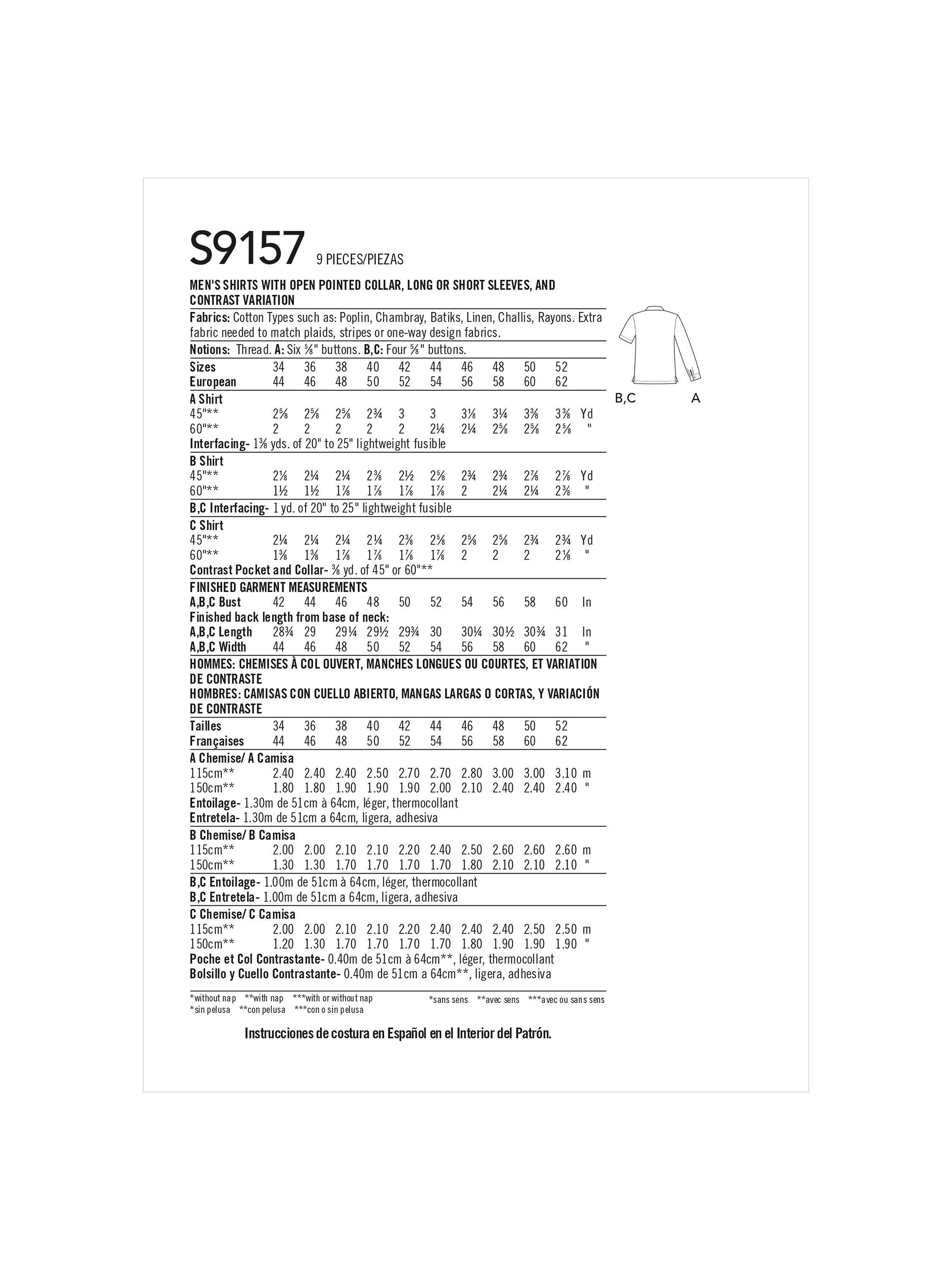 Men's shirts with open pointed collar, long or short sleeves, and contrast variation.