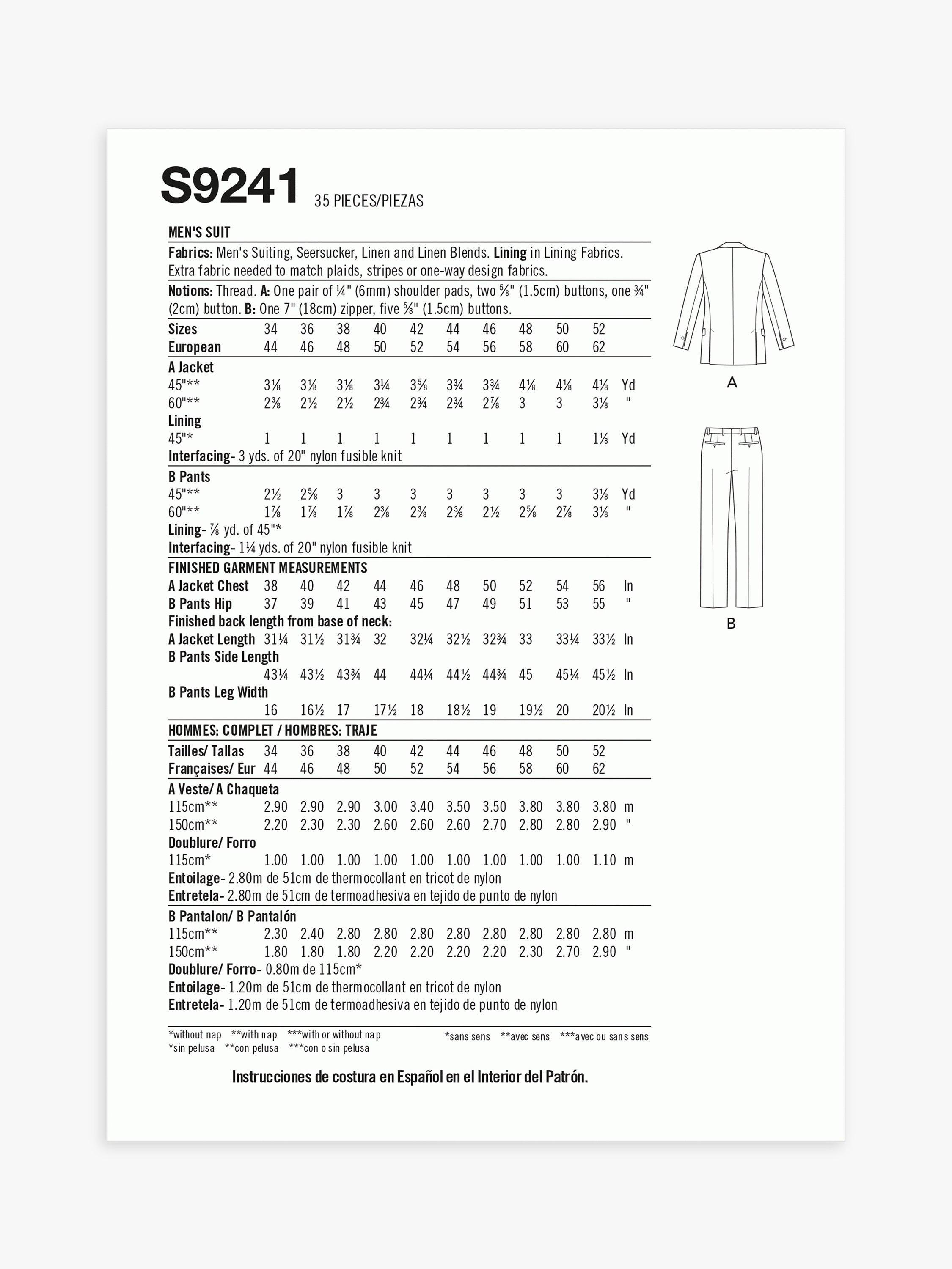 SimplicityMen's Suit Jacket Sewing Pattern, SS9241, AA