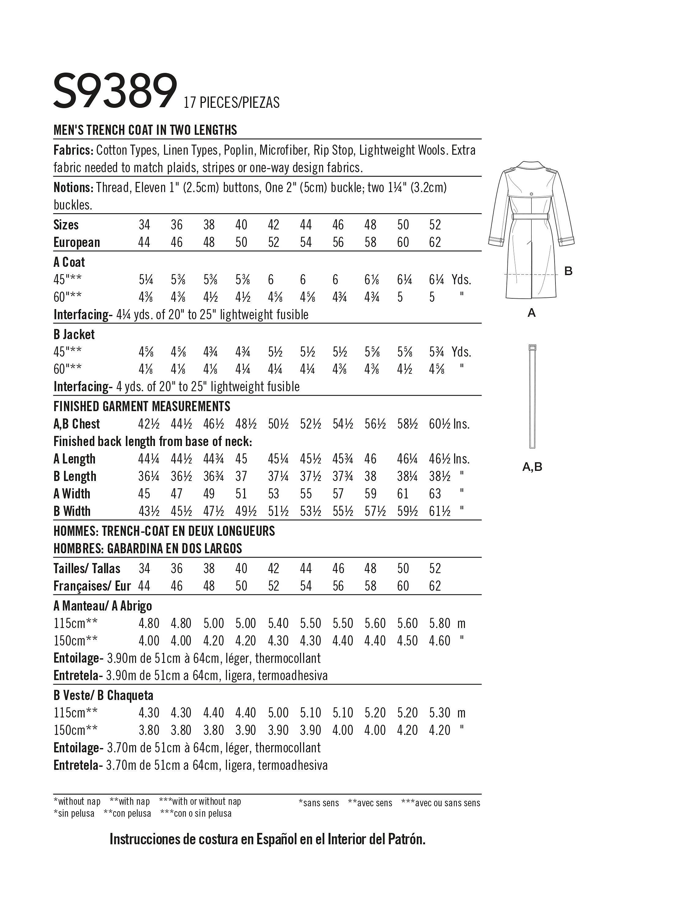 SimplicityMen's Trench Coat Sewing Pattern, S9389, BB