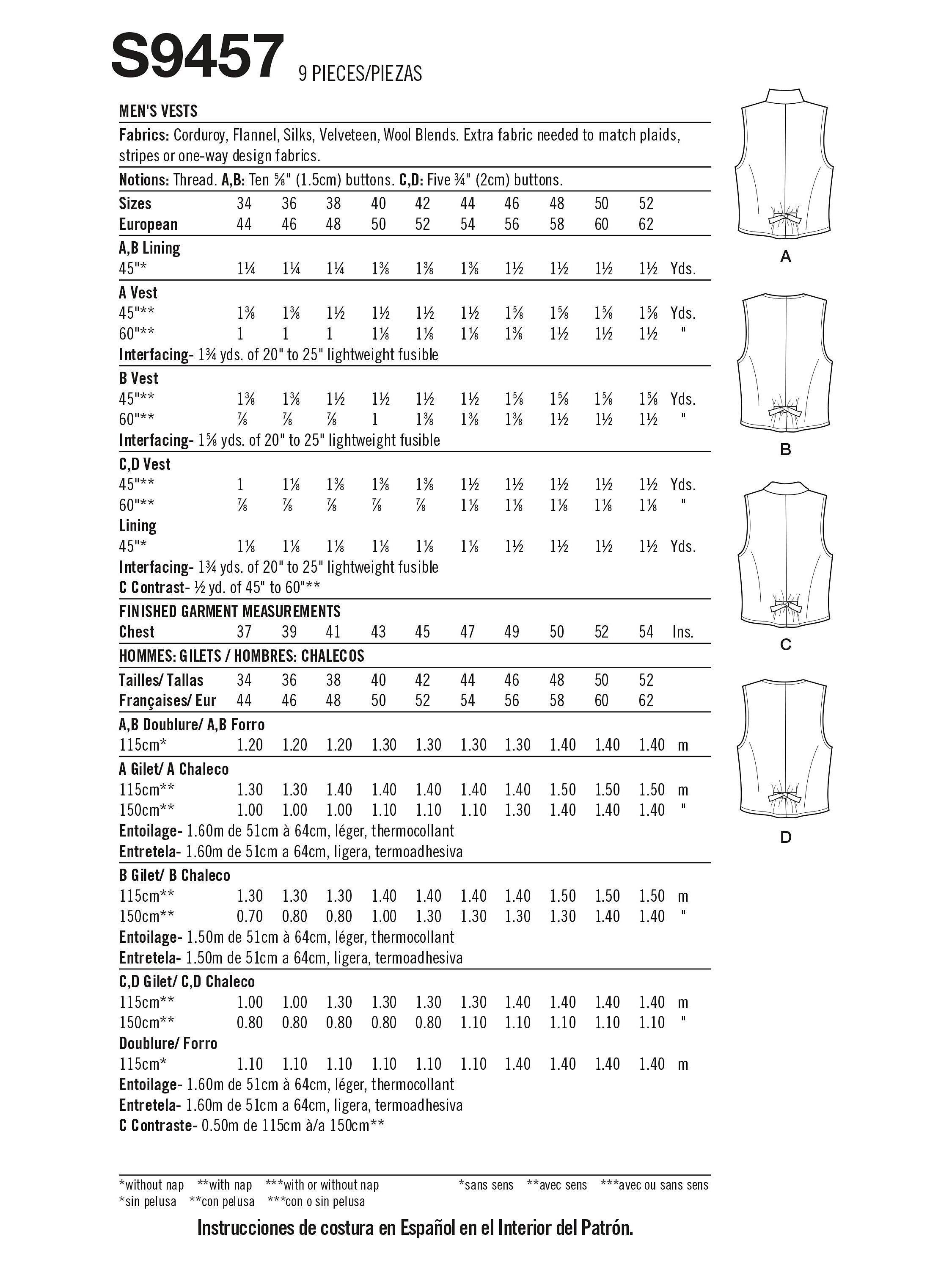 SimplicityMen's Waistcoats Sewing Pattern, S9457