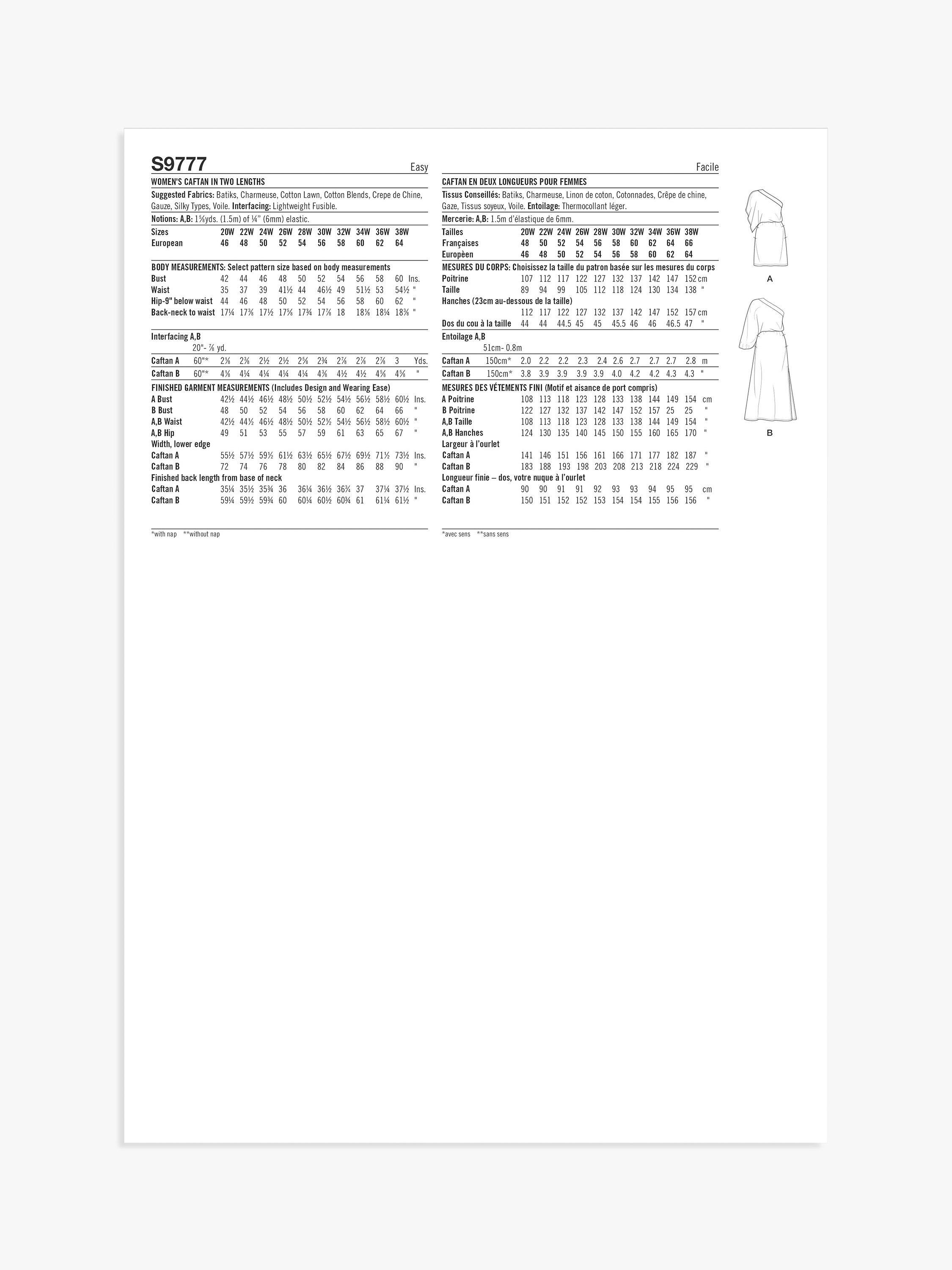 SimplicityMimi G Women's Caftans Sewing Pattern, S9777