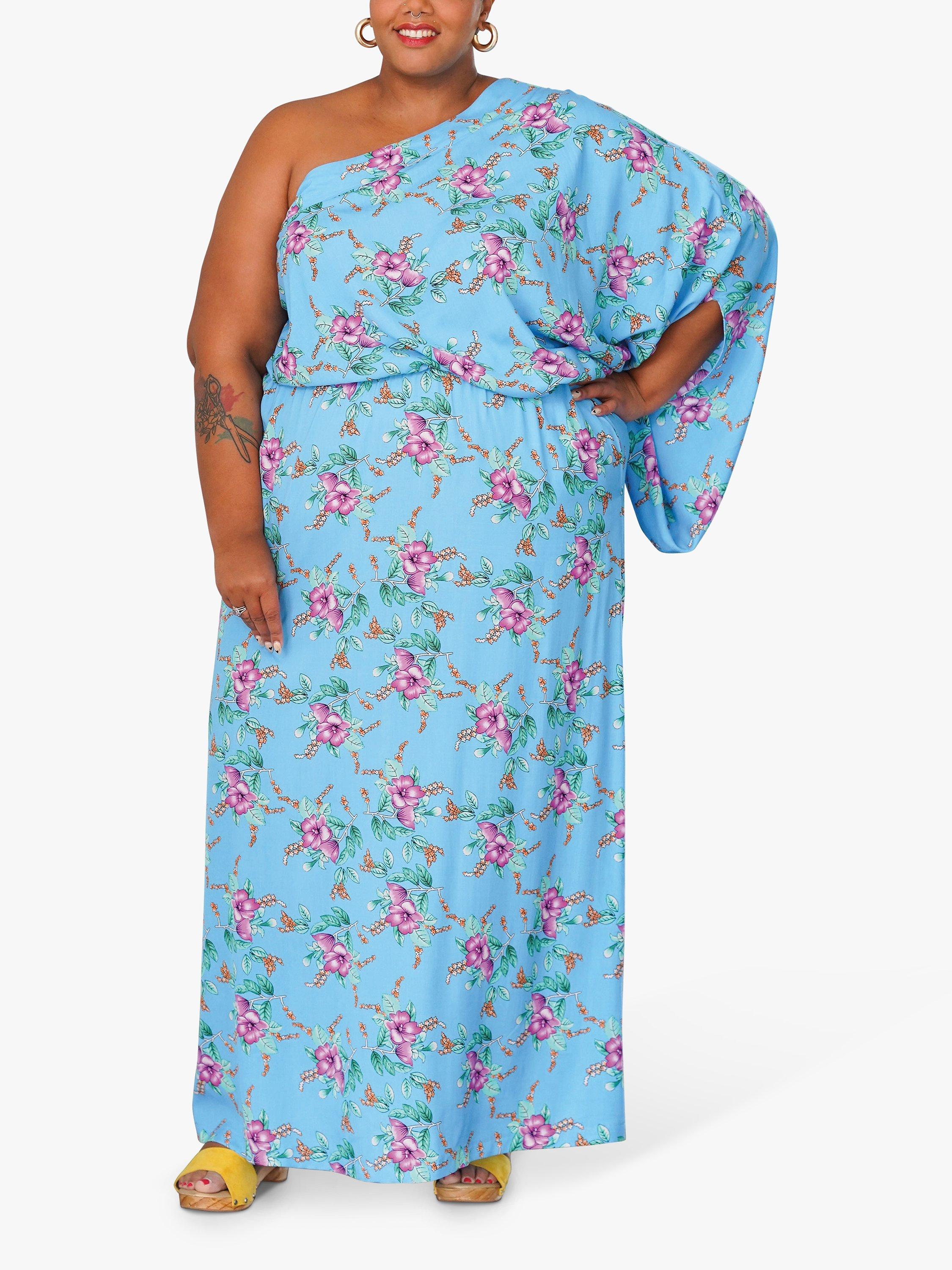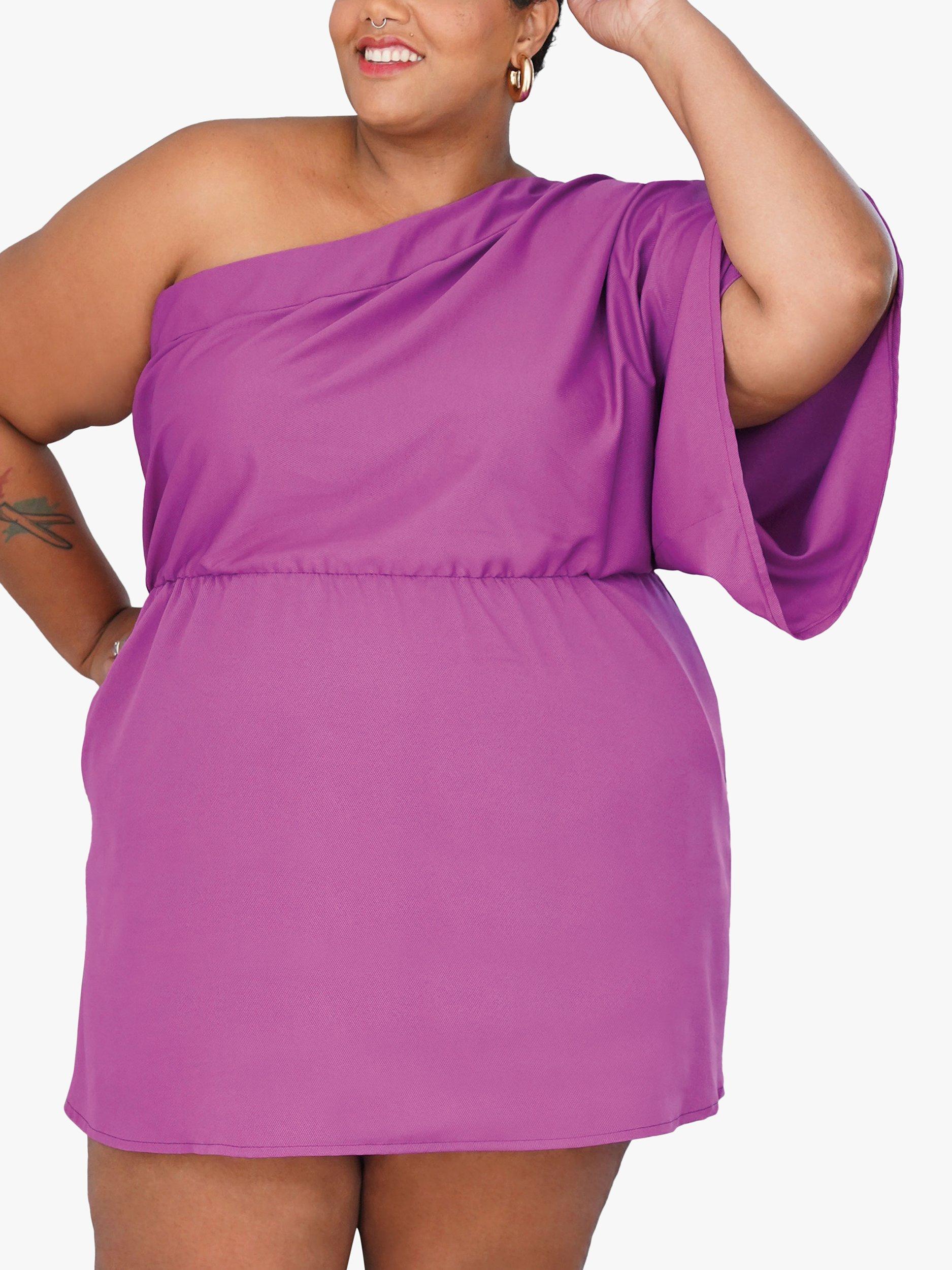 Easy-to-sew, one-shoulder caftan dress in mini and maxi lengths with sleeve options, side seam pockets and an elasticated waist. Maxi length has side slit.