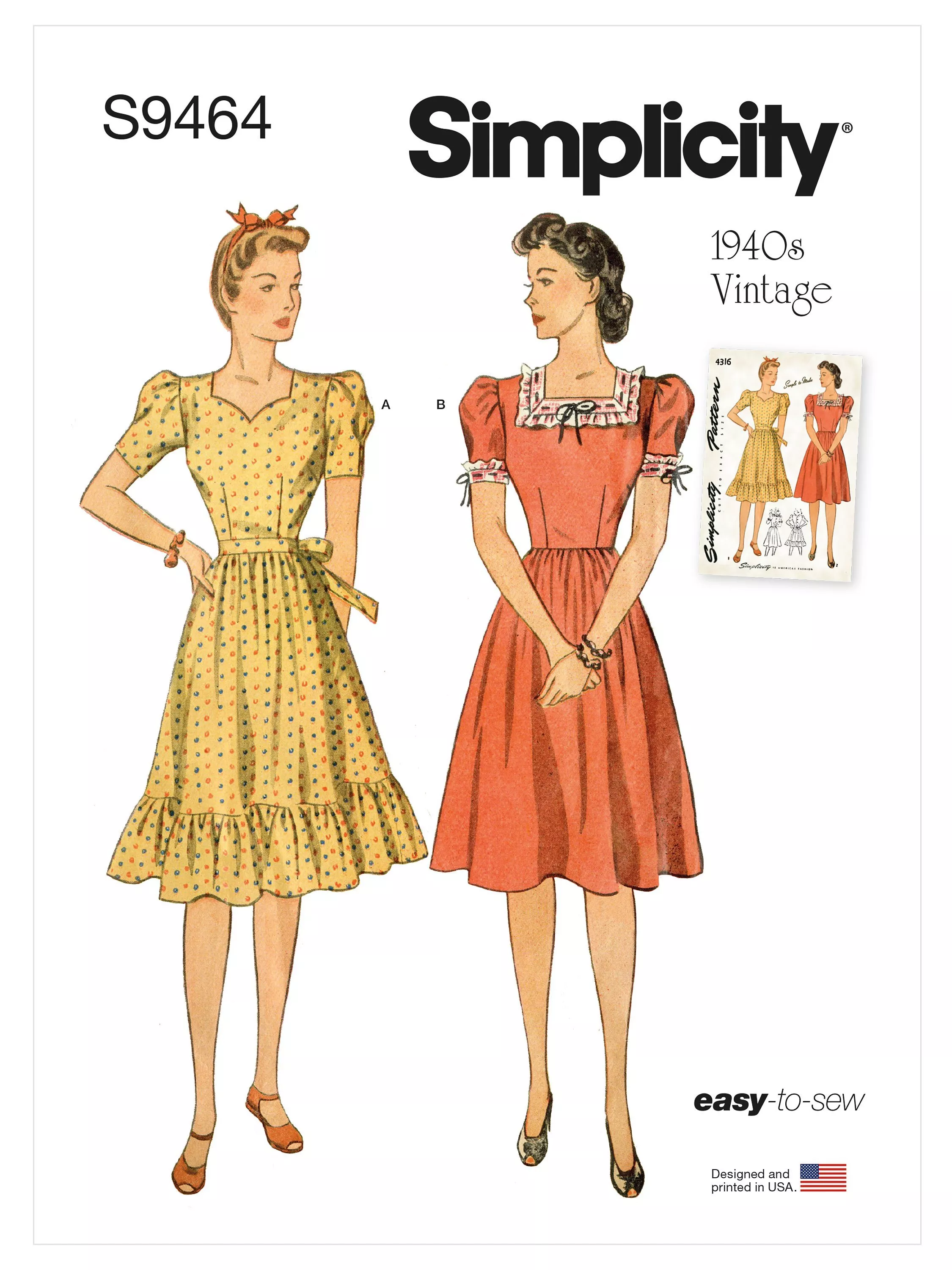 SimplicityMisses' 1940s Vintage Dress Sewing Pattern, S9464