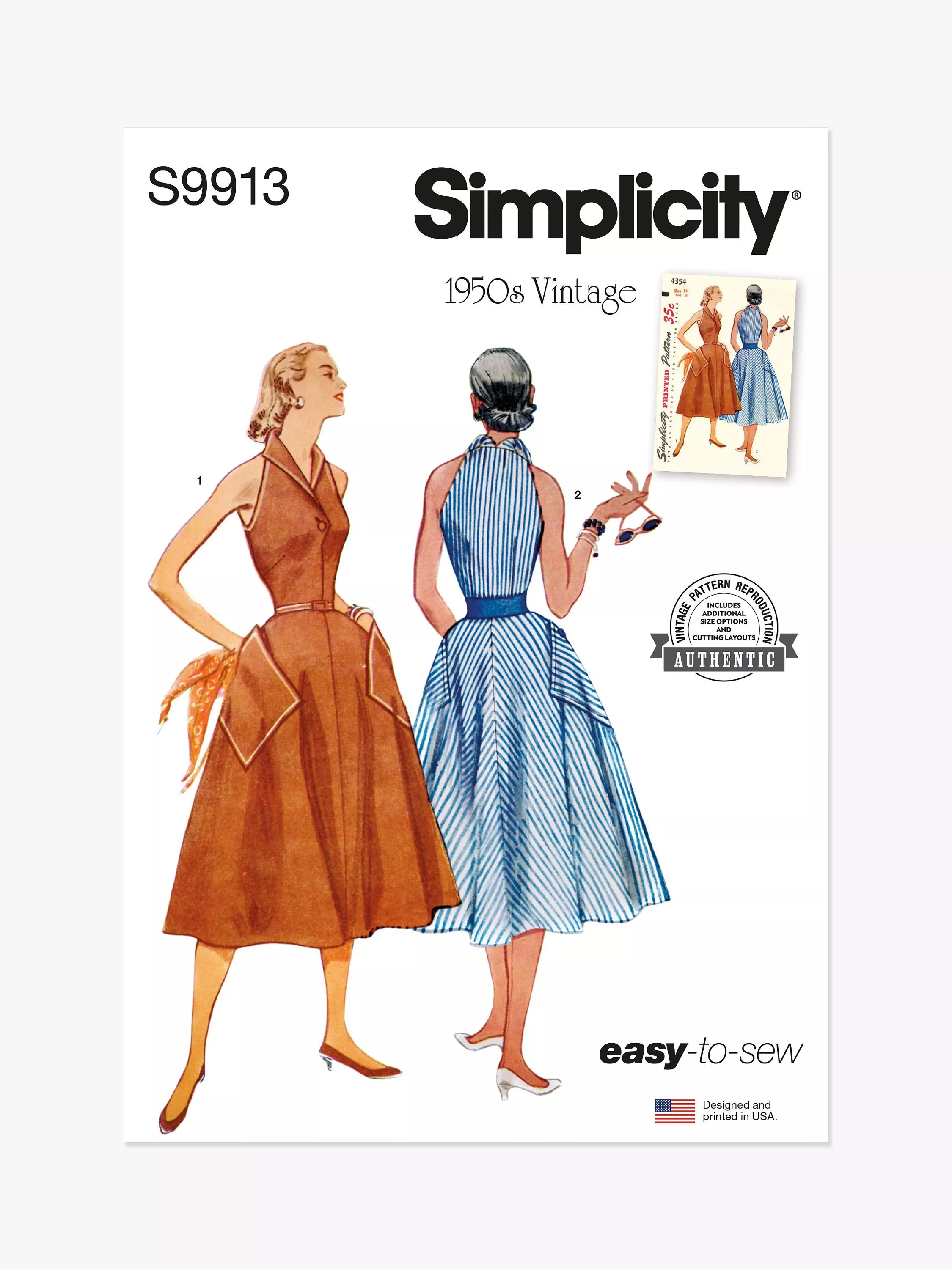 SimplicityMisses' 1950s Vintage Dress Sewing Pattern, S9913