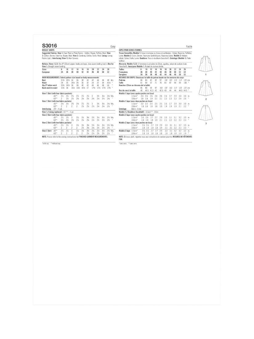 SimplicityMisses' 1950s Vintage Skirts Sewing Pattern, S3016