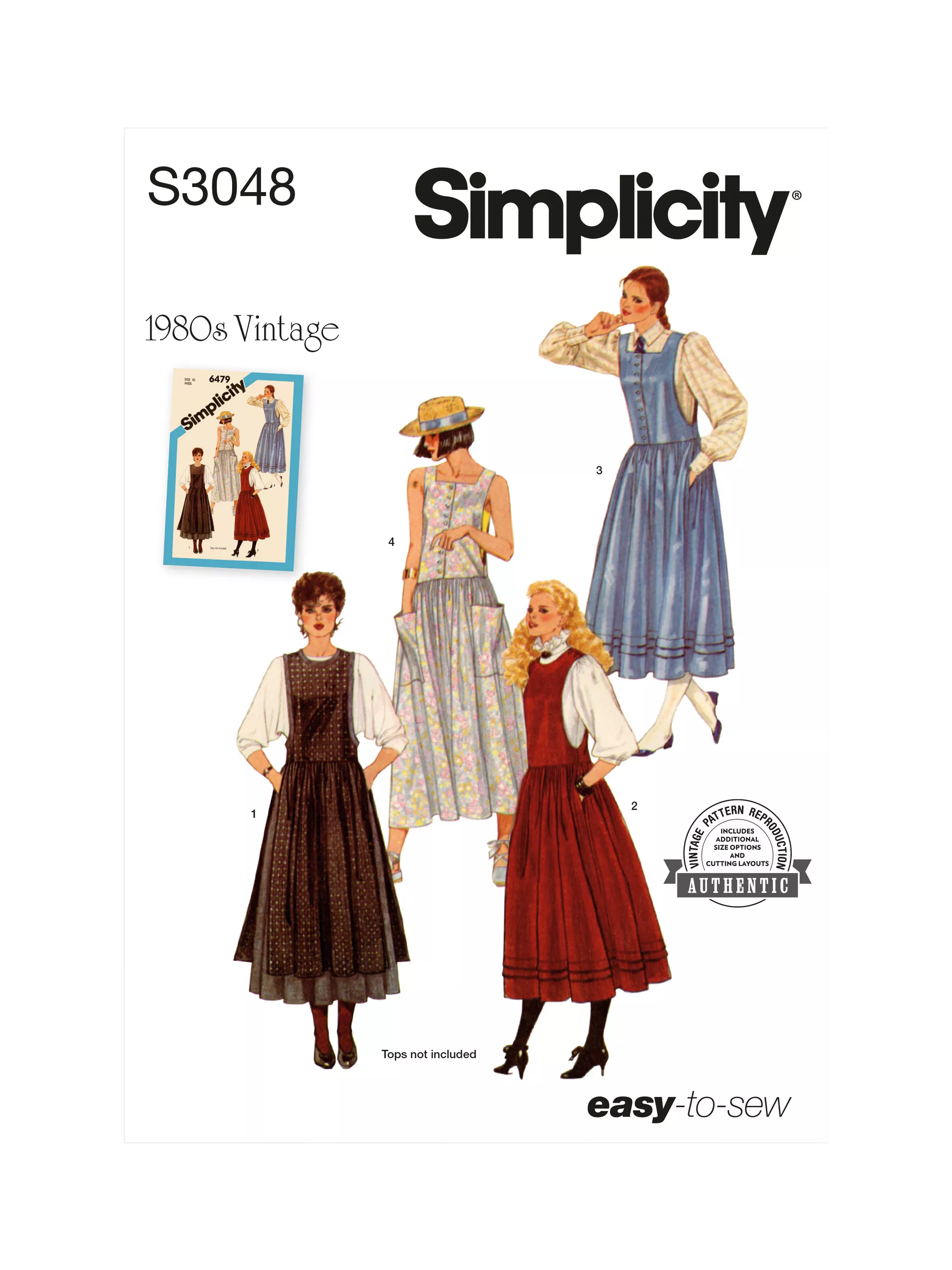 SimplicityMisses' 1980s Vintage Pinafores Sewing Pattern, S3048