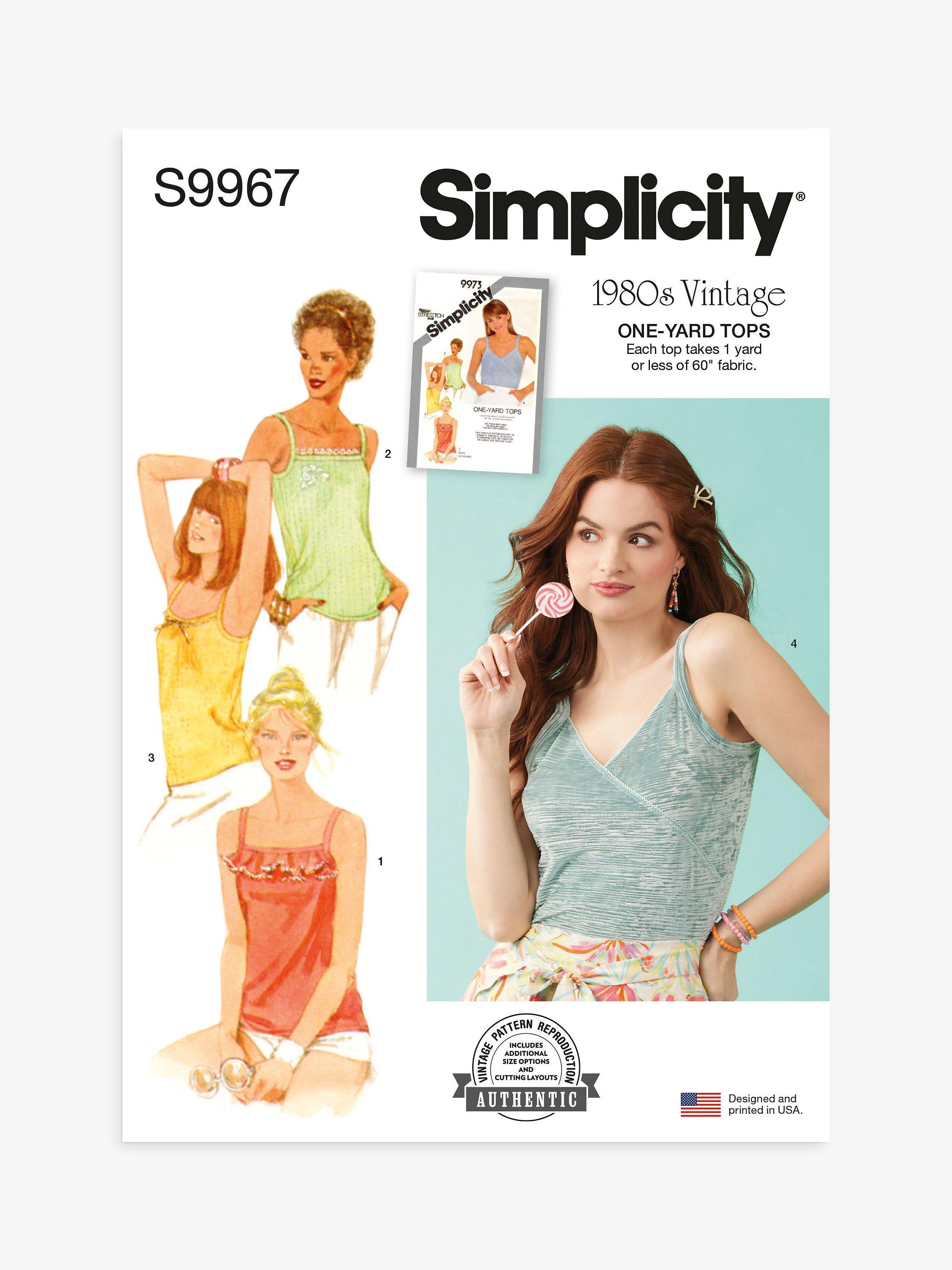 Vintage Simplicity 1980's pullover tops. Each top takes 90cm or less of 152cm fabric.