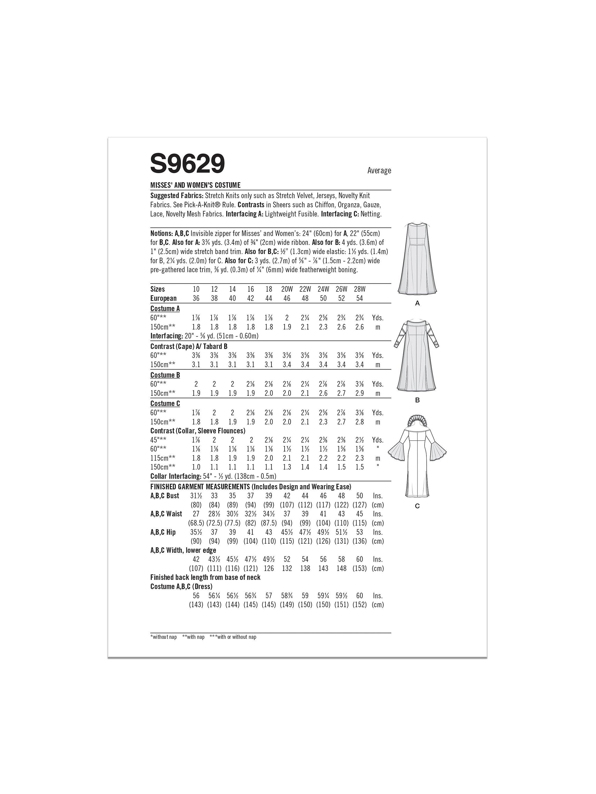 SimplicityMisses' and Women's Costume Gown Sewing Pattern, S9629