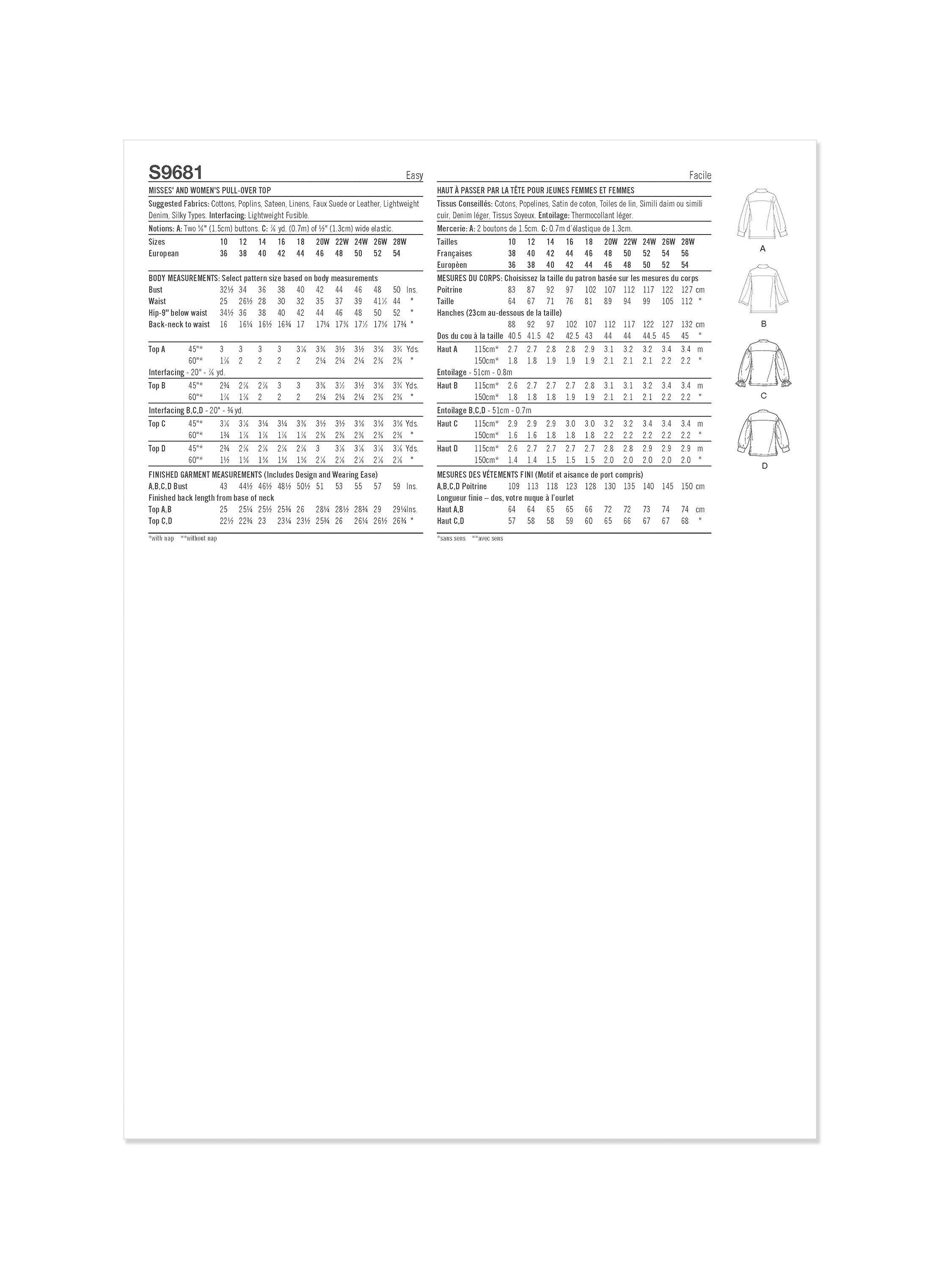 SimplicityMisses' and Women's Pullover Top Sewing Pattern, S9681