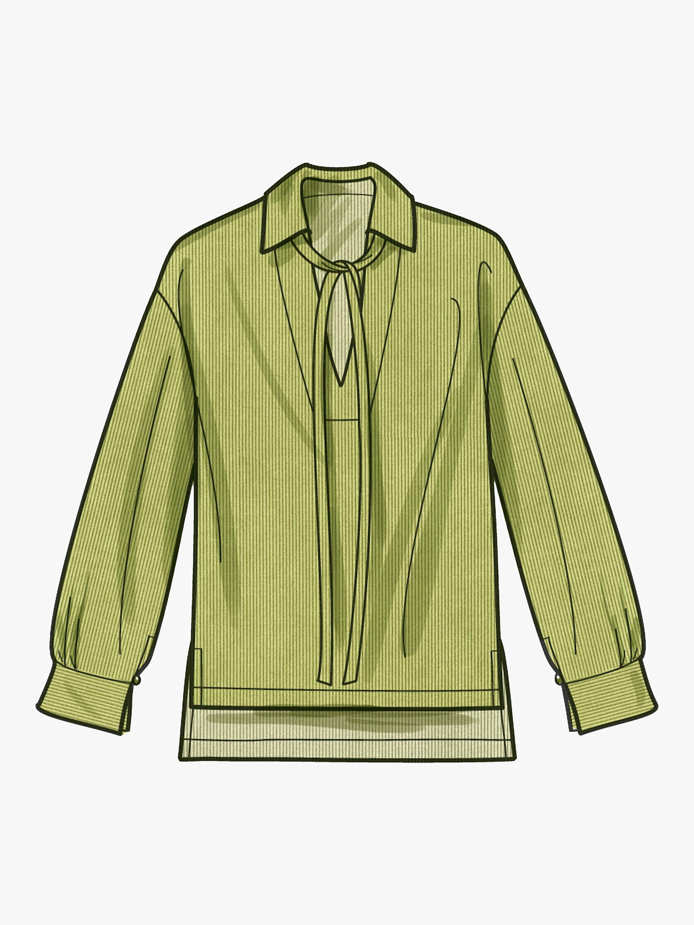 Trendy pull-over tops can dress up any outfit! View A and View B have pointed collar and shirttail hem with different sleeve options. View C and View D have stand collar and puff sleeves. View C has elastic at sleeves.
