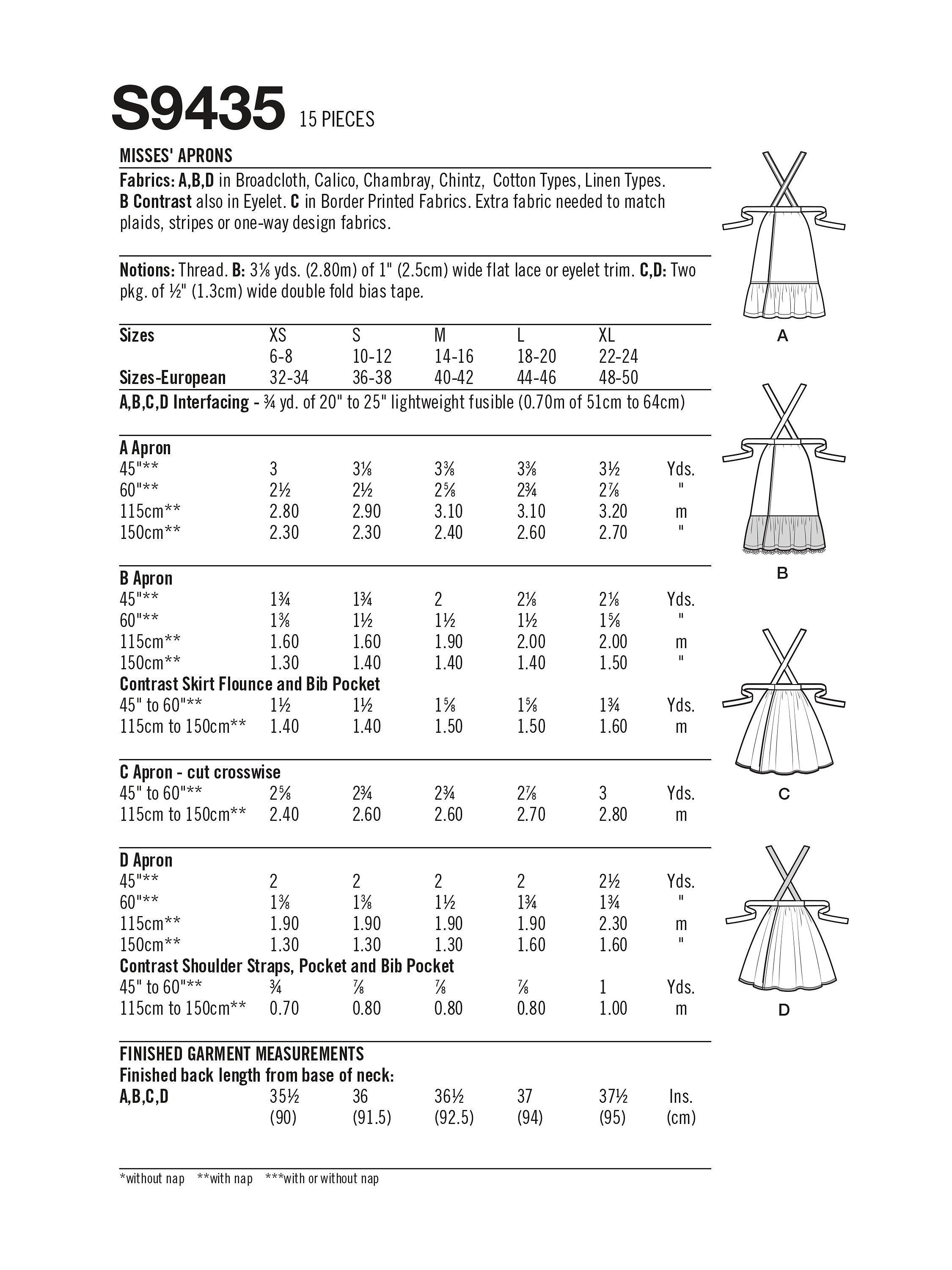 SimplicityMisses' Aprons Sewing Pattern, S9435, A