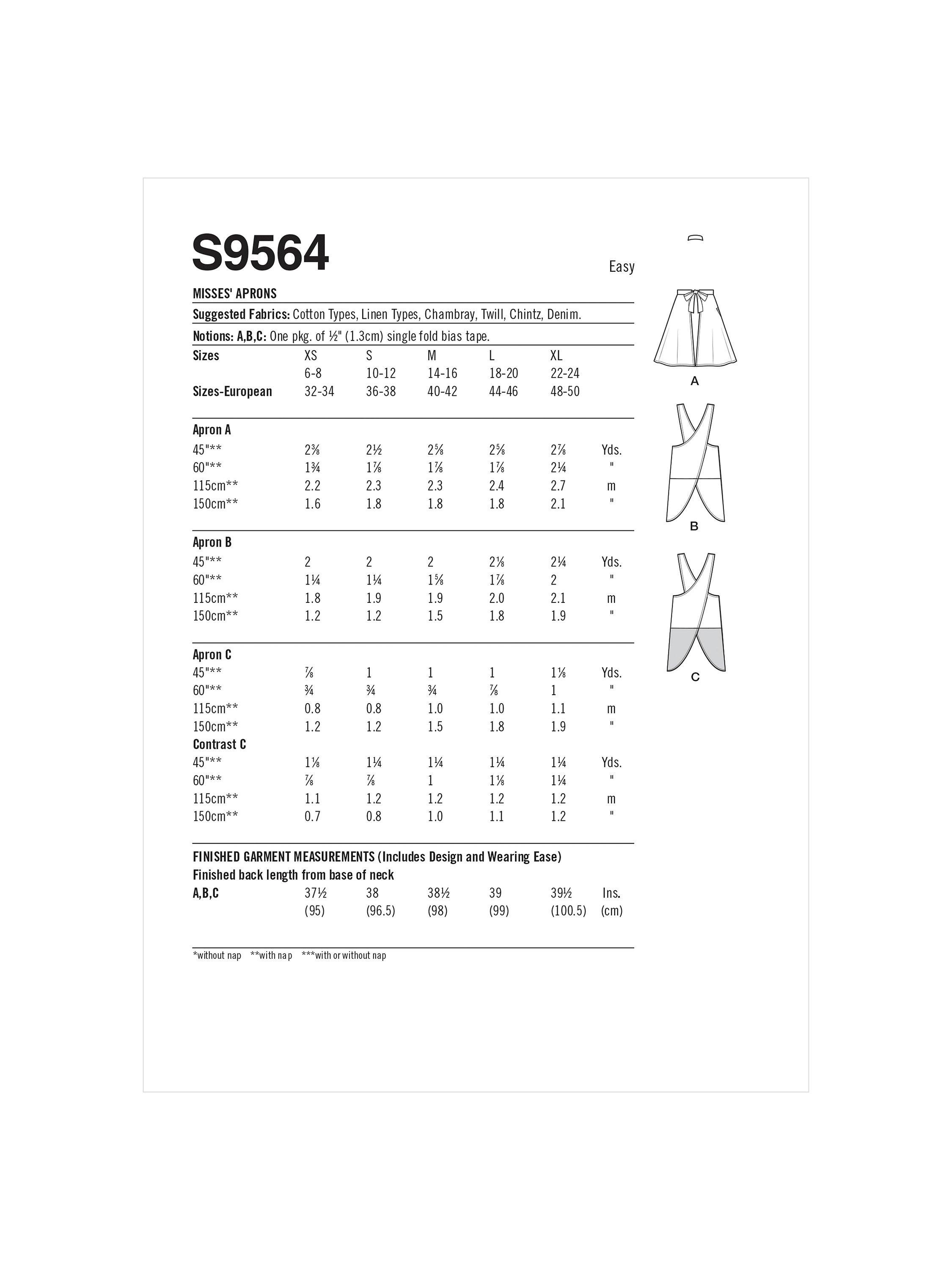 SimplicityMisses' Aprons Sewing Pattern, S9564A