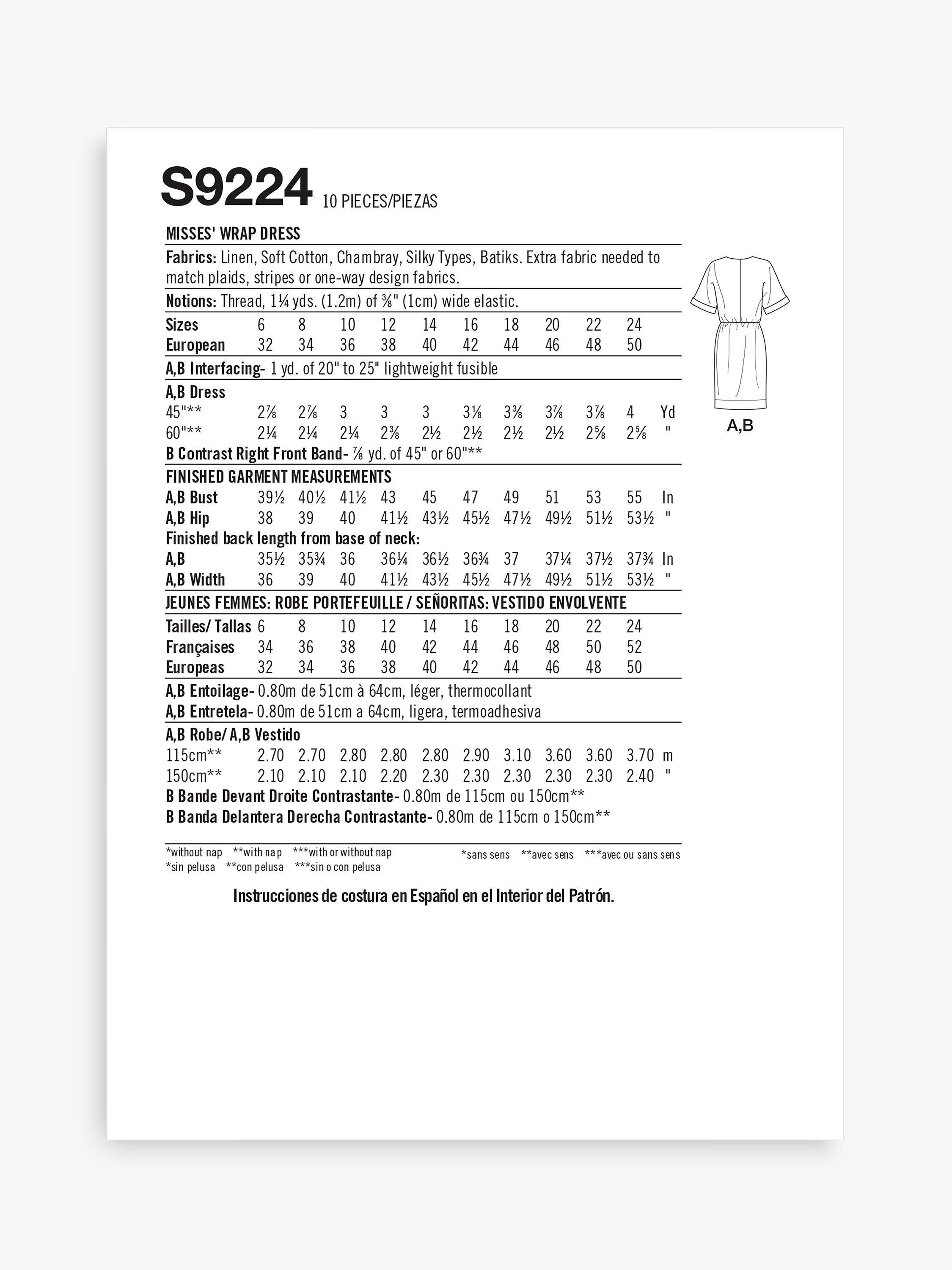 SimplicityMisses' Asymmetrical Wrap Dress Sewing Pattern, S9224