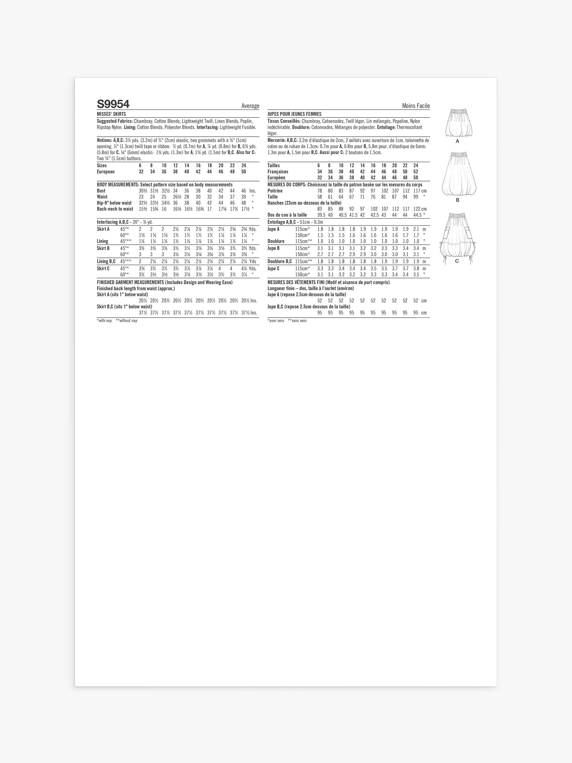 SimplicityMisses' Balloon Skirts Sewing Pattern, S9954