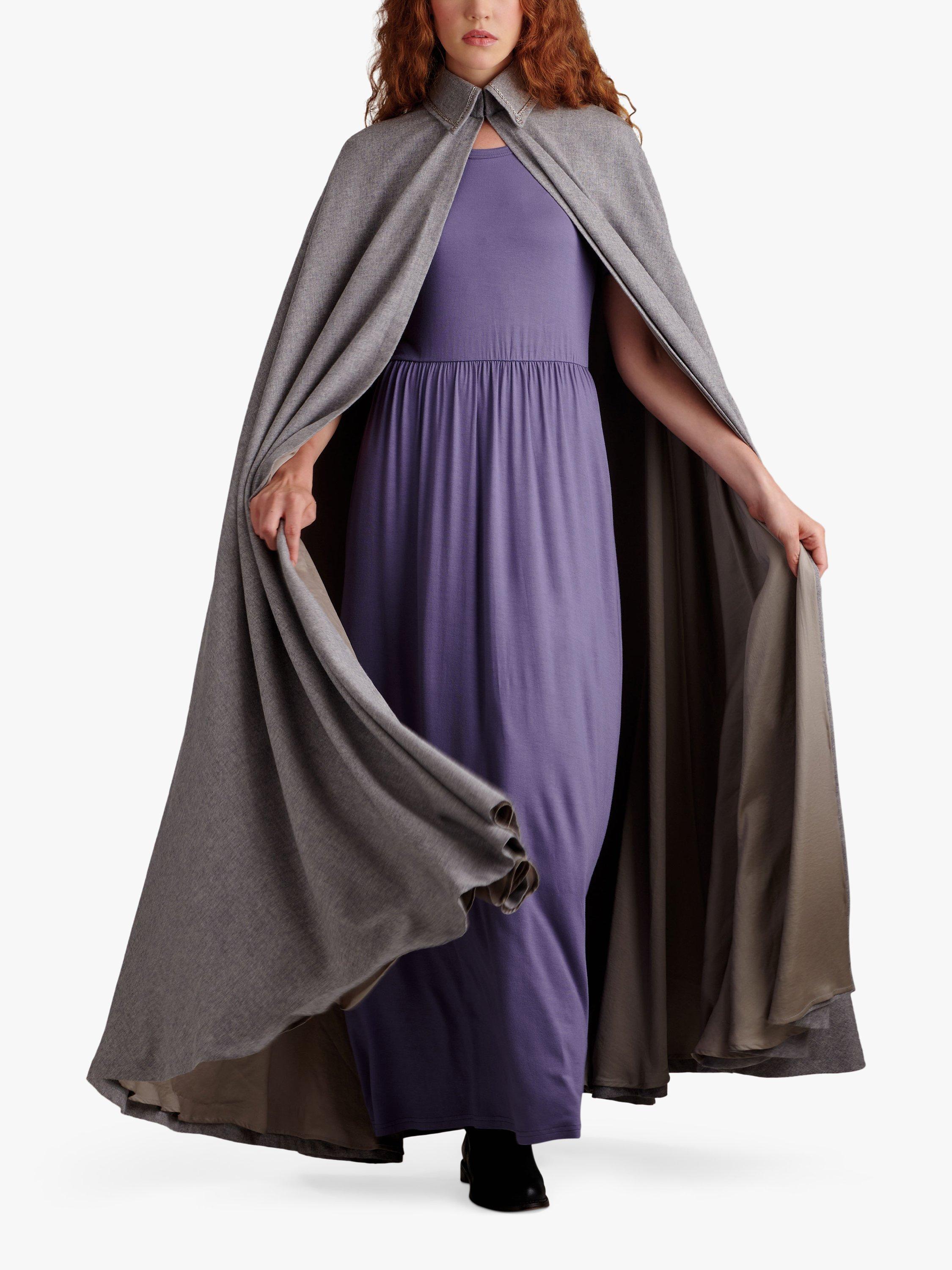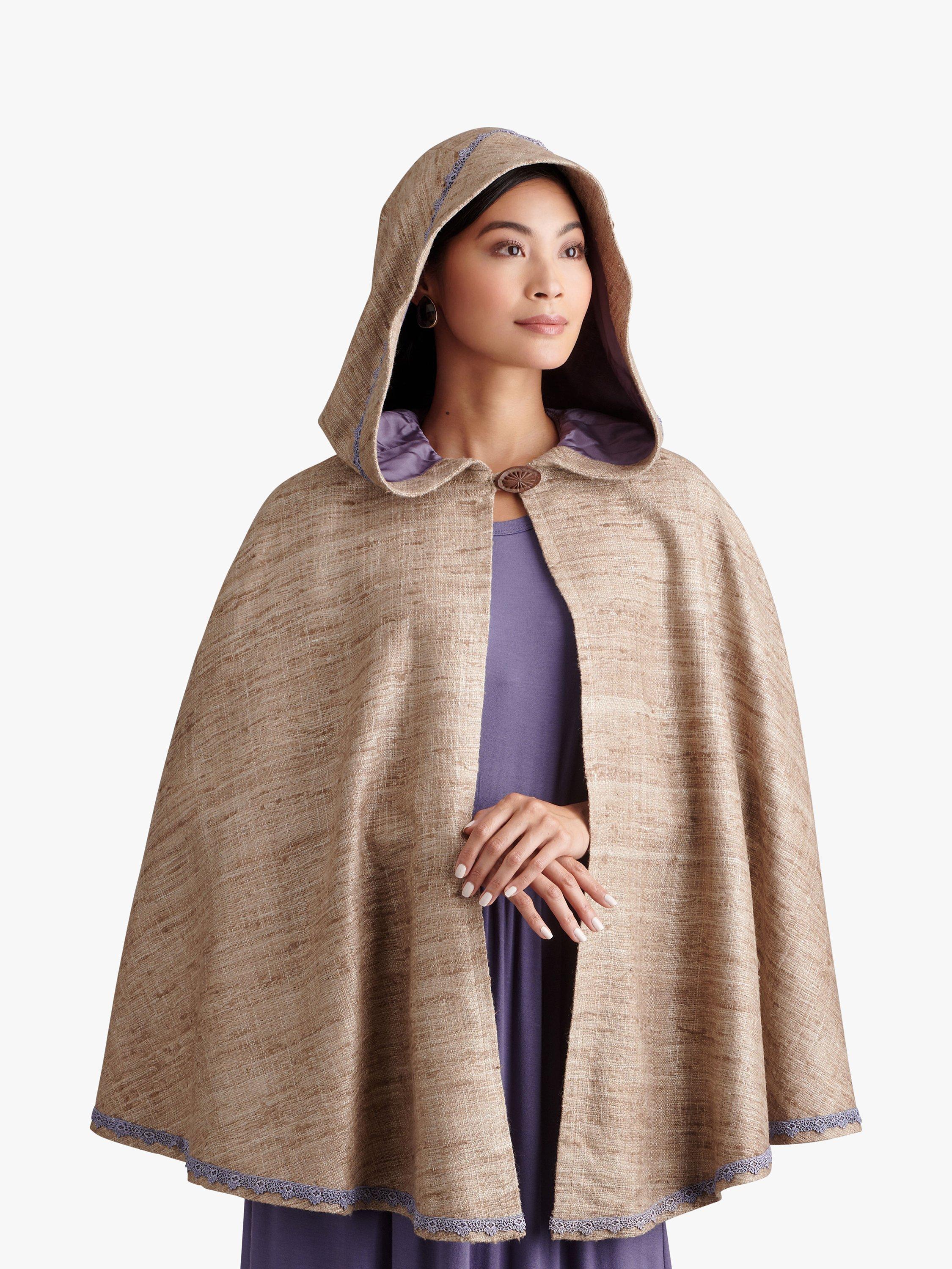 Fully lined capes and capelet have length and collar variations.