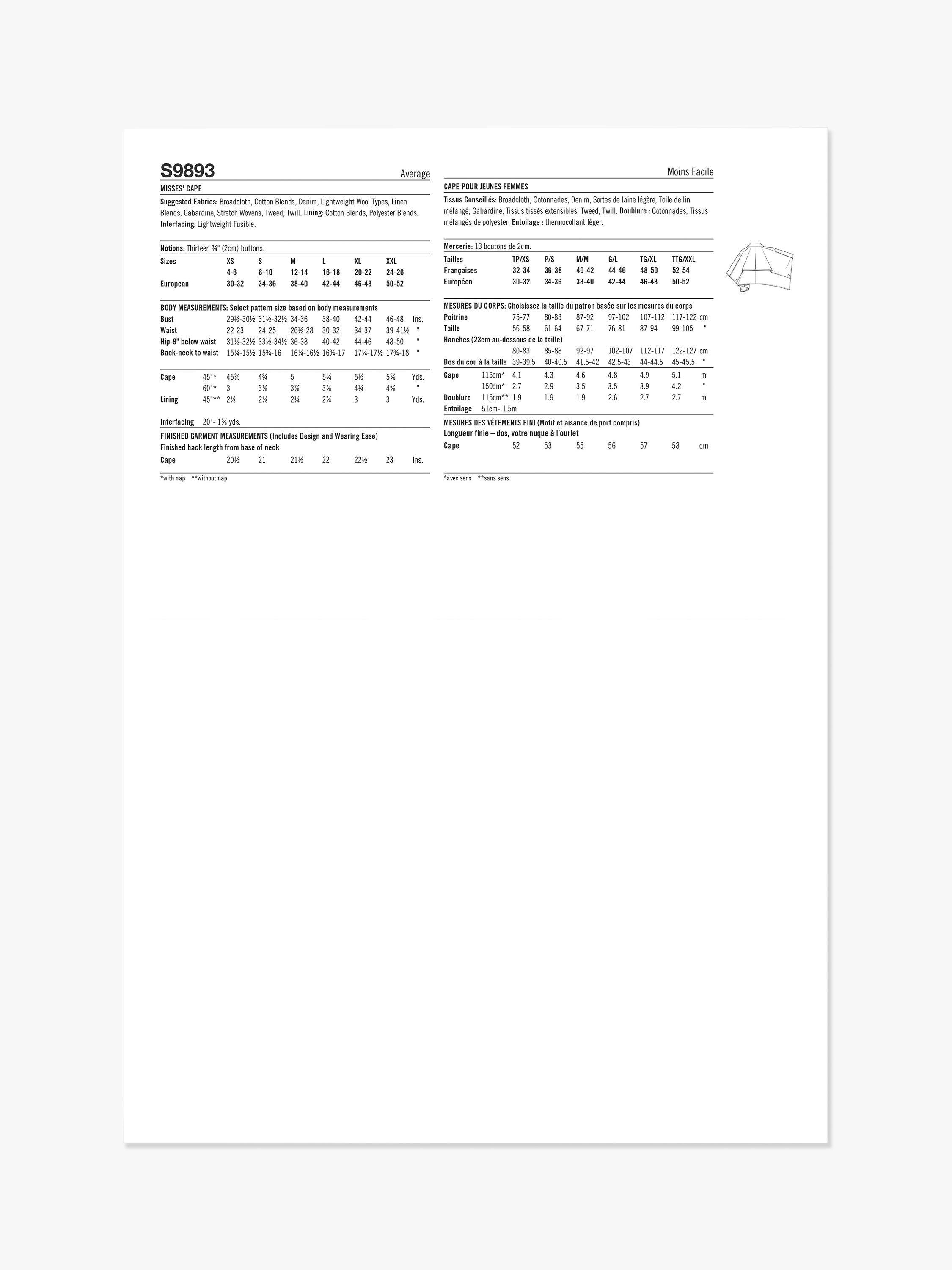 SimplicityMisses' Cape Sewing Pattern, S9893
