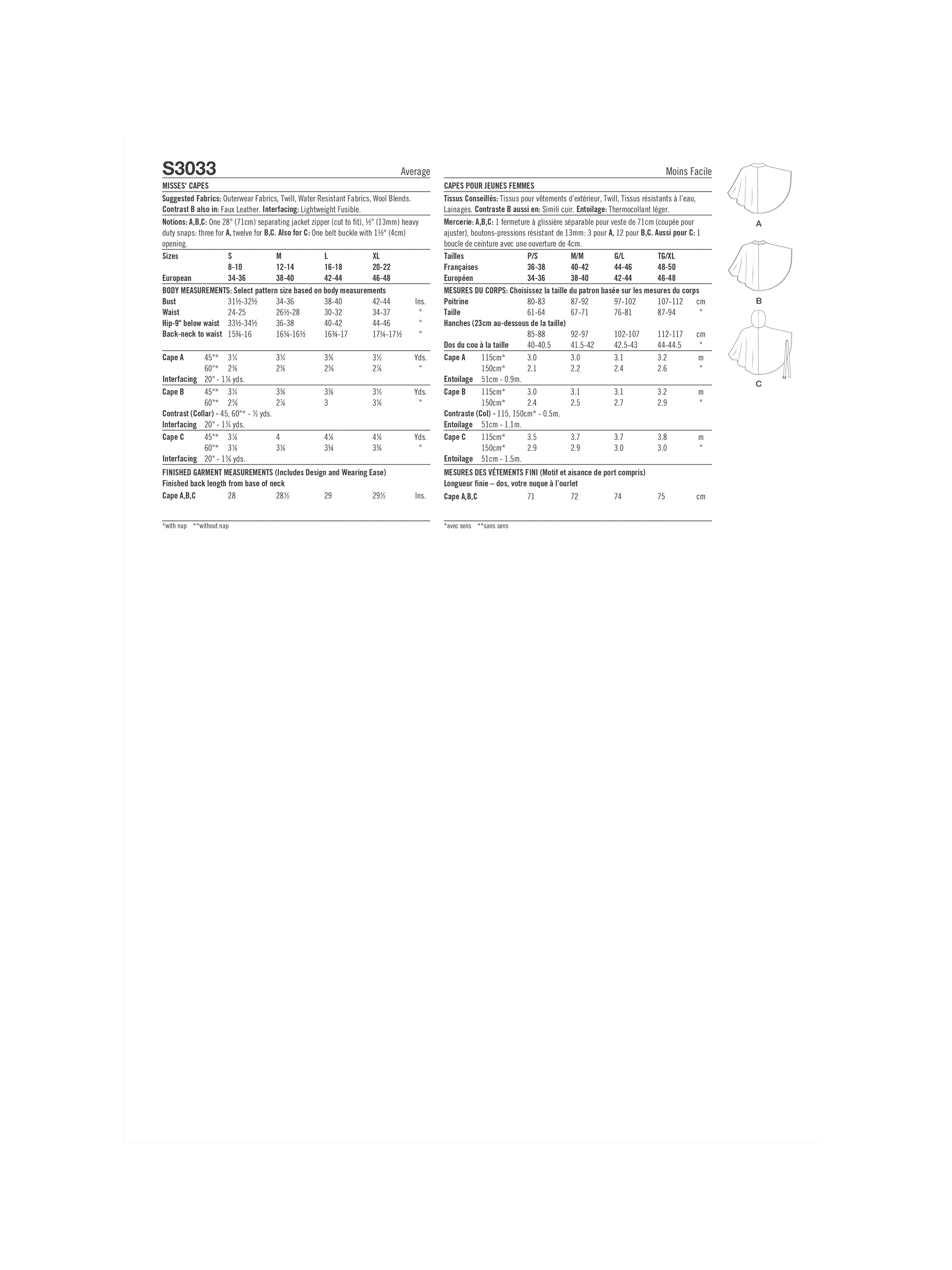 SimplicityMisses' Capes Sewing Pattern, S3033