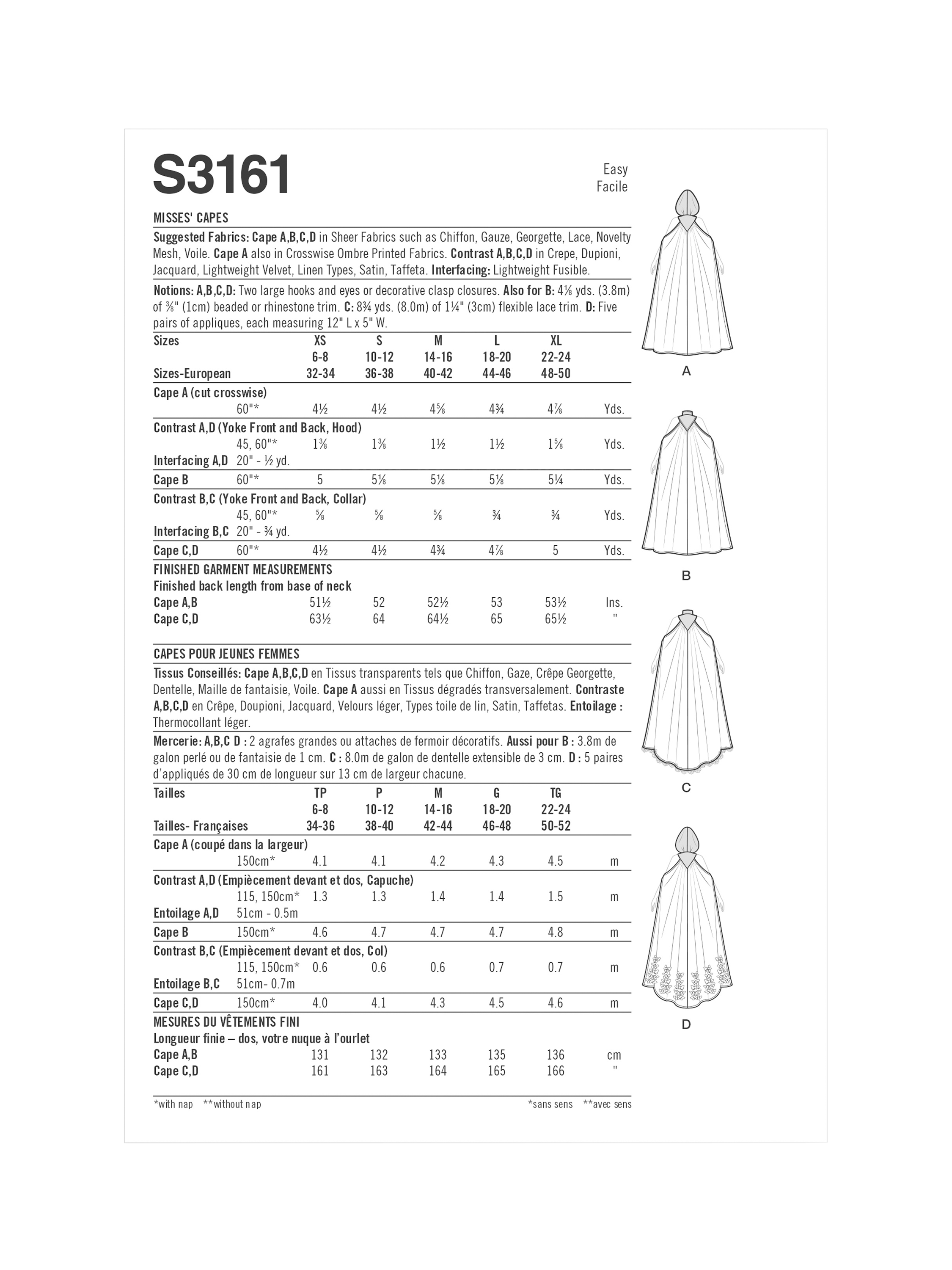 SimplicityMisses' Capes Sewing Pattern, S3161
