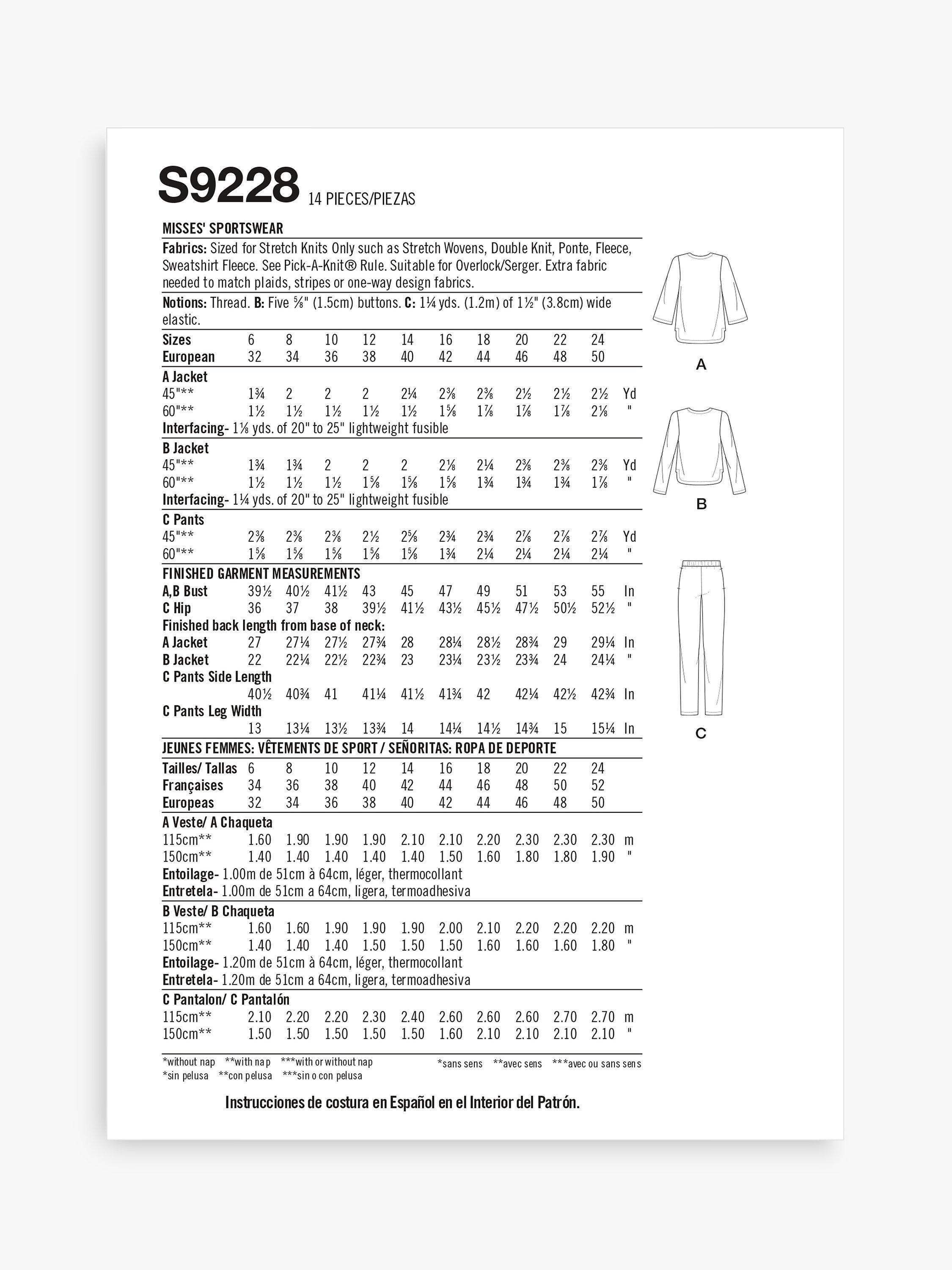 SimplicityMisses' Comfortwear Jackets and Pull On Pants Sewing Pattern S9228